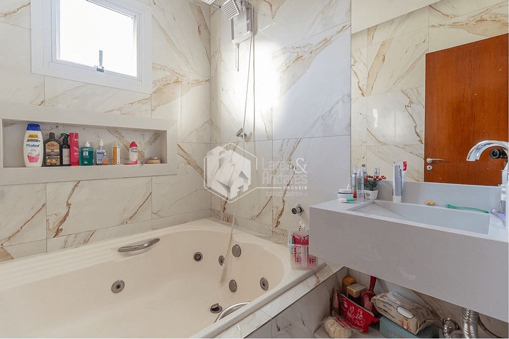 O sobrado dispõe de 4 amplos quartos sendo 2 suítes e 1 máster com banheira além de 7 elegantes banheiros. A extensa área de estar (250m²) é perfeita para receber amigos e familiares. Conta com um depósito de 8m² na garagem.