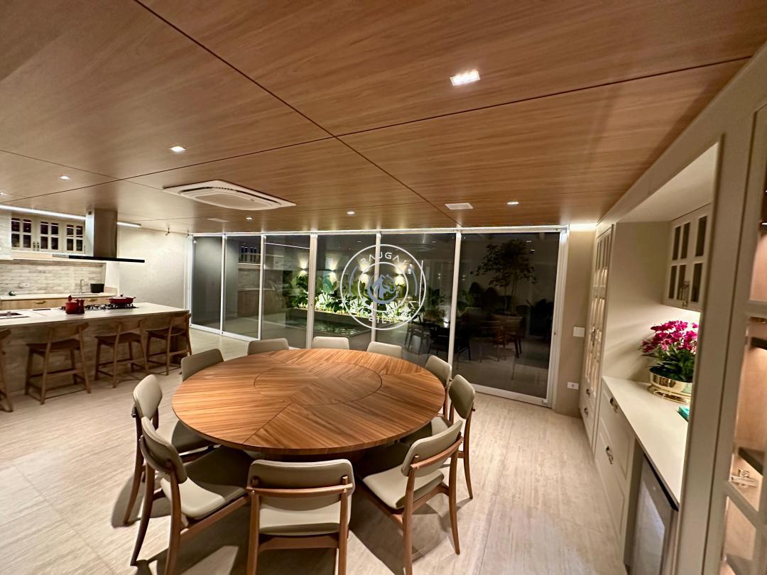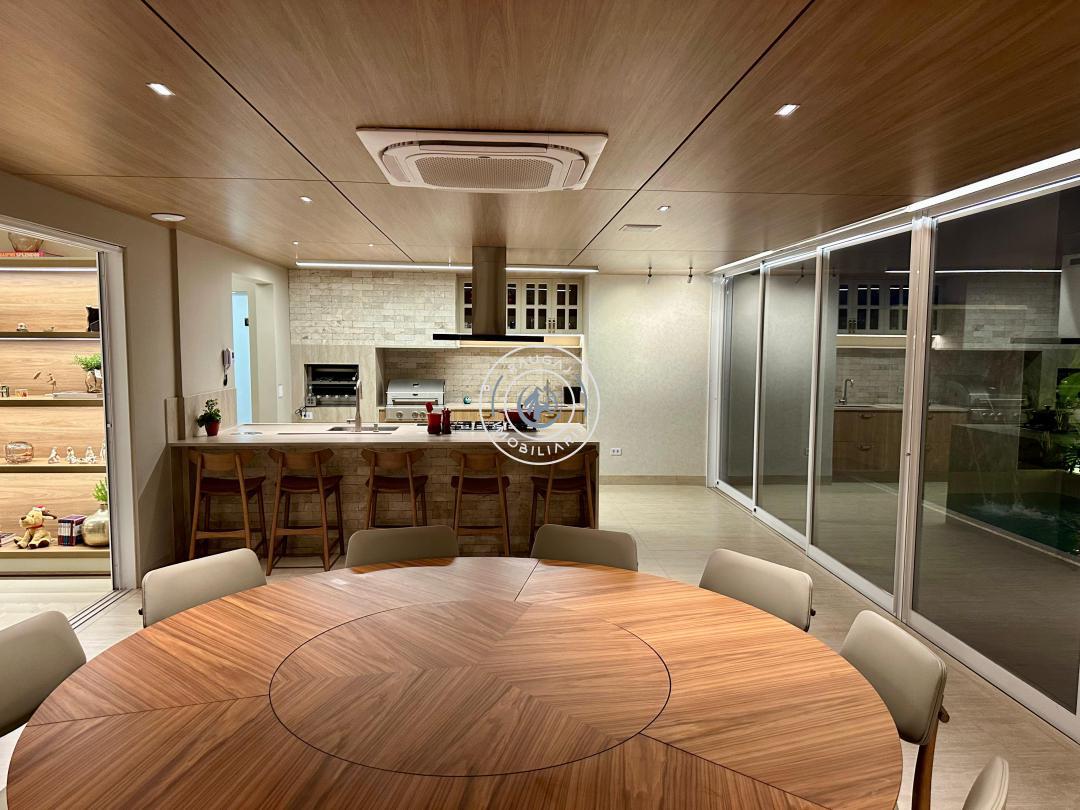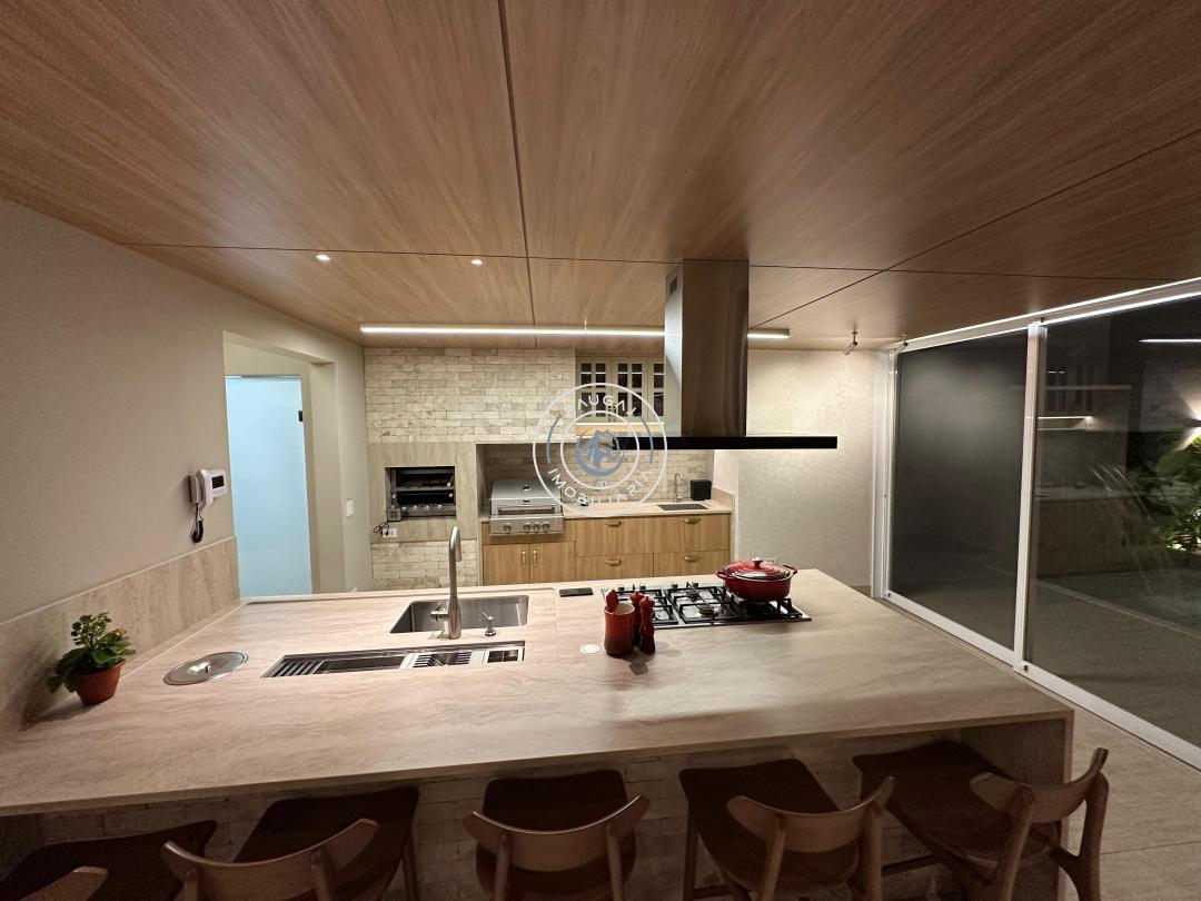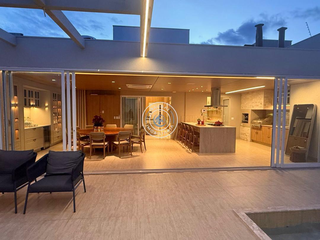Aqui temos uma área gourmet fantástica, com churrasqueira e + 1 churrasqueira a gás armários planejados da @celmarmoveiscg , ar k7 , piscina aquecida, se o calor ainda te incomodar as salas de estar e jantar com pé direito duplo são climatizadas, se bater o cansaço a área intima fica isolada para que você possa descansar sem barulho ou perturbação, as suítes são todas climatizadas e contam com persianas motorizadas que podem facilmente fazer o dia tornar-se noite.