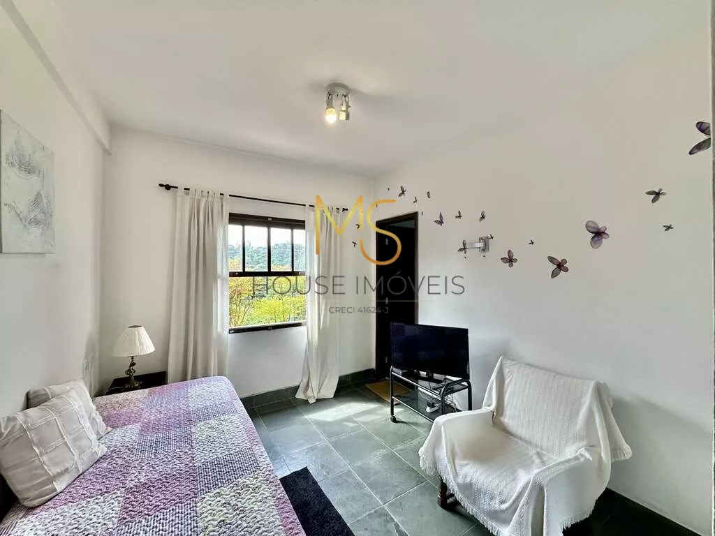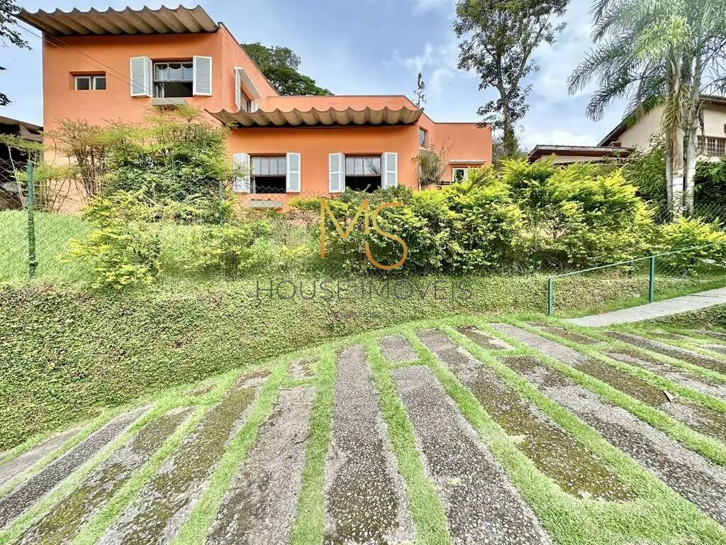 Casa á venda integrada com muita privacidade e linda vista.Ótima localização no miolo da Granja Viana, permitindo deslocar-se a pé para o centrinho, Escola G.V. e St. John’s, mercado, farmácia, restaurantes e todos os serviços disponíveis.Muito ensolarada, bem arejada e iluminada. Face norte total. Sempre mais quente no inverno e mais fresca no verão. Isolamento térmico entre o telhado e o forro (forro de Ipê em toda área social e íntima). Portas e janelas em madeira e vidro, com venezianas nos quartos. Pisos em Ardósia, revestimento de madeira e Miracema no quintal. Jardim amplo e formado com frutíferas: goiaba, jabuticaba, limão francês, banana, acerola, abacate, seriguela, uvaia, maracujá, pêssego. Rampa de acesso com guarda corpo de ferro, 3 acessos: social, lazer e serviço. Entrada social com porta de madeira. Cozinha Americana integrada à sala de jantar, com bancadas em ardósia, 2 cubas individuais em inox e coifa. Ligações independentes para filtro dee água, máquina lava-louças. Área de serviço aberta ensolarada e lavanderia fechada integrada à cozinha, com 2 tanques inox, armários e depósito. 4 dormitórios com armários, sendo 2 suítes, em 2 pisos íntimos.Banheiros com bancadas em ardósia, sendo a master com hidro, banheiro de serviço, ideal para depósito, atelier, oficina, ferramentas, espaço para desenvolvimento de uma área gourmet completa, integrado à varanda / terraço sala de jantar e cozinha. Garagem para 6 vagas descobertas.