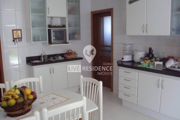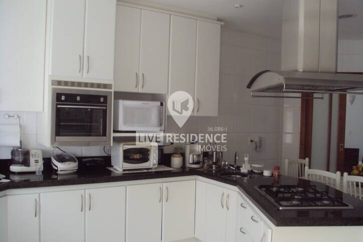 A cozinha planejada, com 60 m², é um verdadeiro destaque, contando com móveis de design exclusivo da marca Italy, fogão de ilha e coifa Tubo Ar em inox, além de uma despensa equipada com estantes em granito. A residência também conta com lavanderia e uma suíte de empregada.