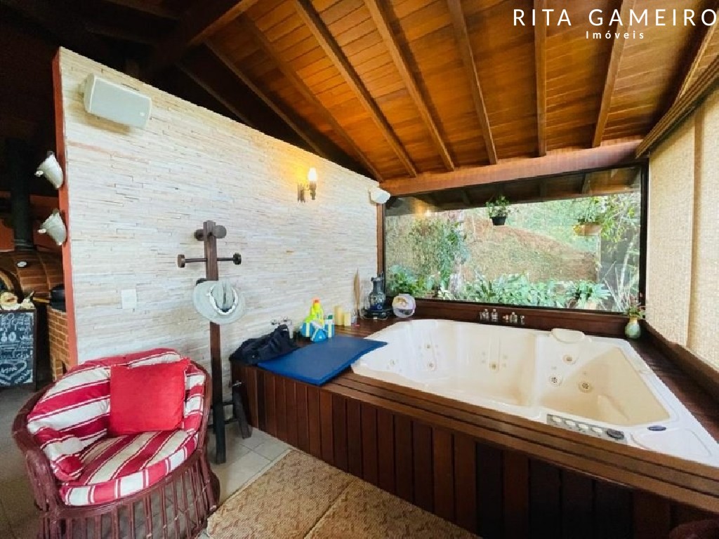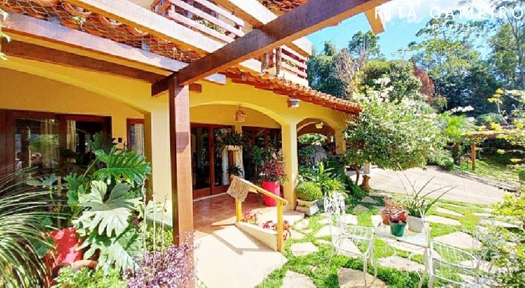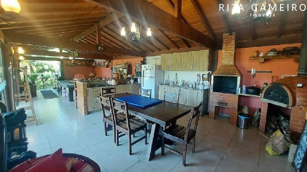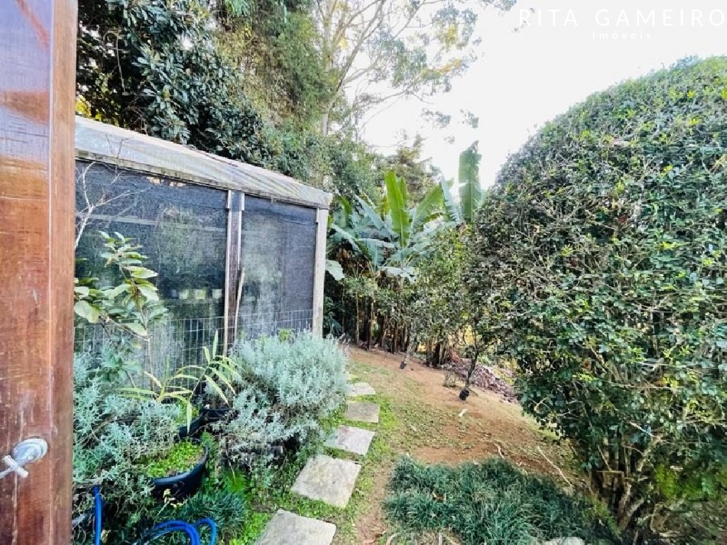 O terreno também oferece um quintal amplo, horta, estufa, pomar, canil, casa de caseiro, e dispõe de 5 vagas cobertas com portão automático.