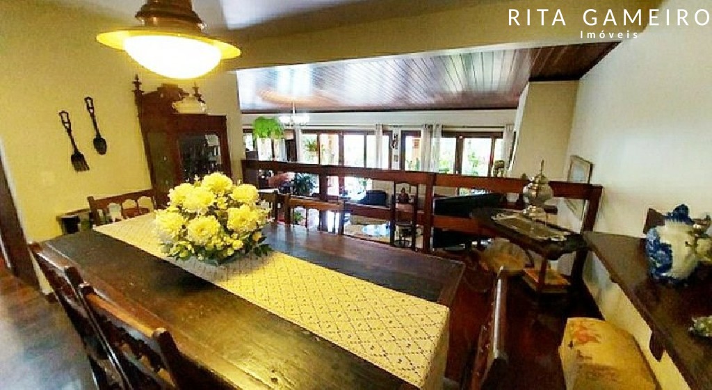 Com 5 dormitórios, sendo 3 suítes, todos com varanda, closet e comodidades que proporcionam conforto e privacidade. A casa oferece ainda 2 banheiros sociais, 2 salas com lareira, um amplo varandão, escritório, cozinha completa com despensa e área de serviço, além de um depósito.