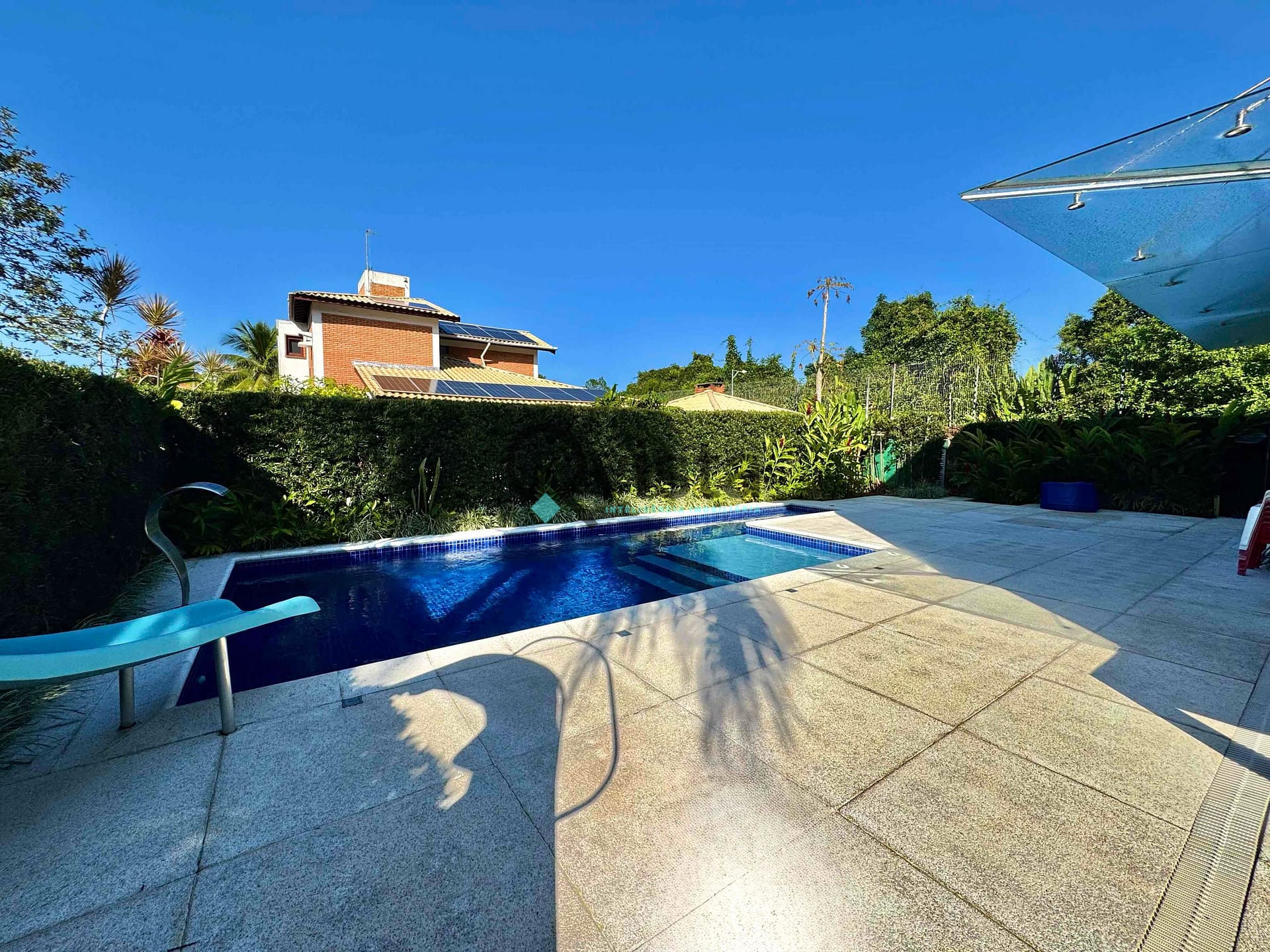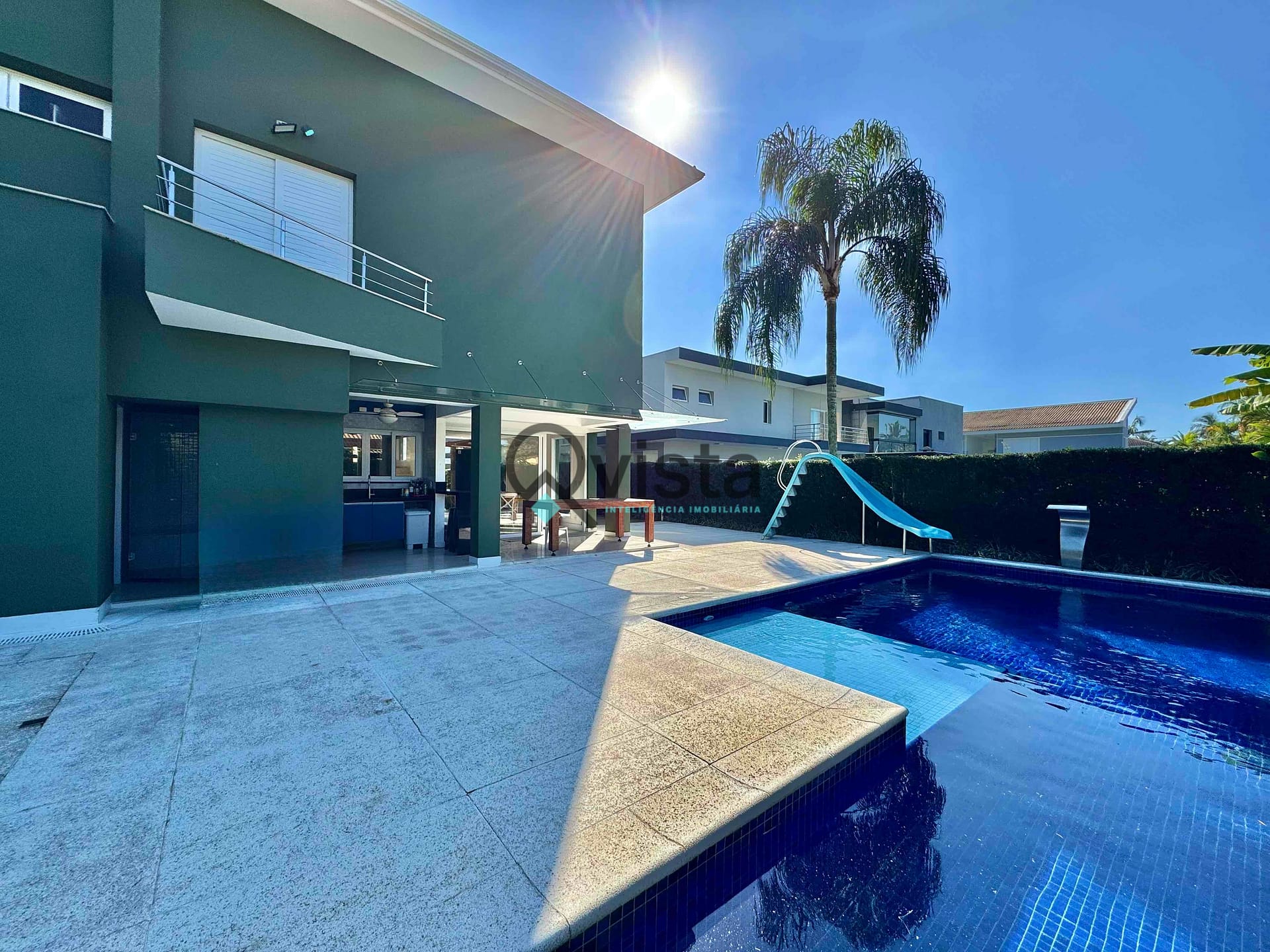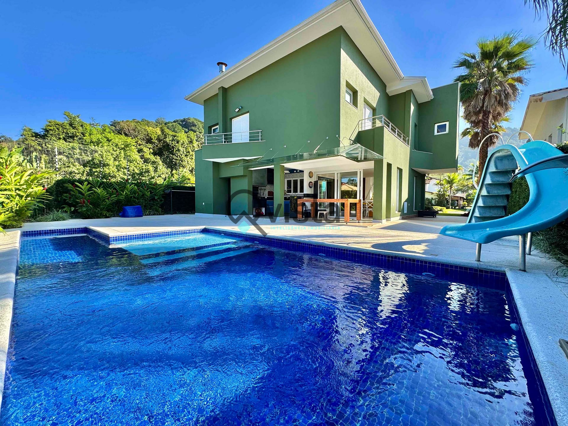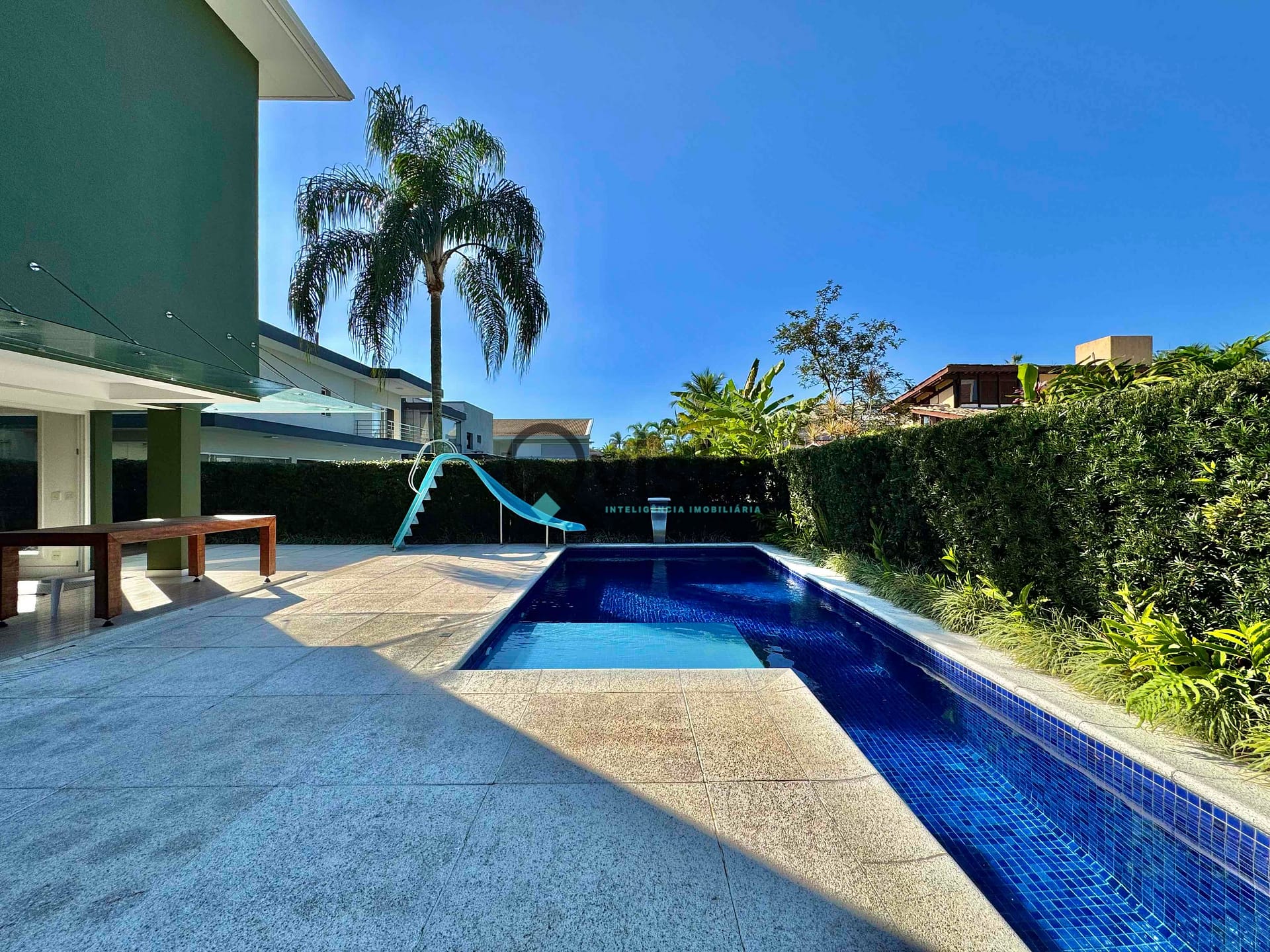 Piscina com tobogã;