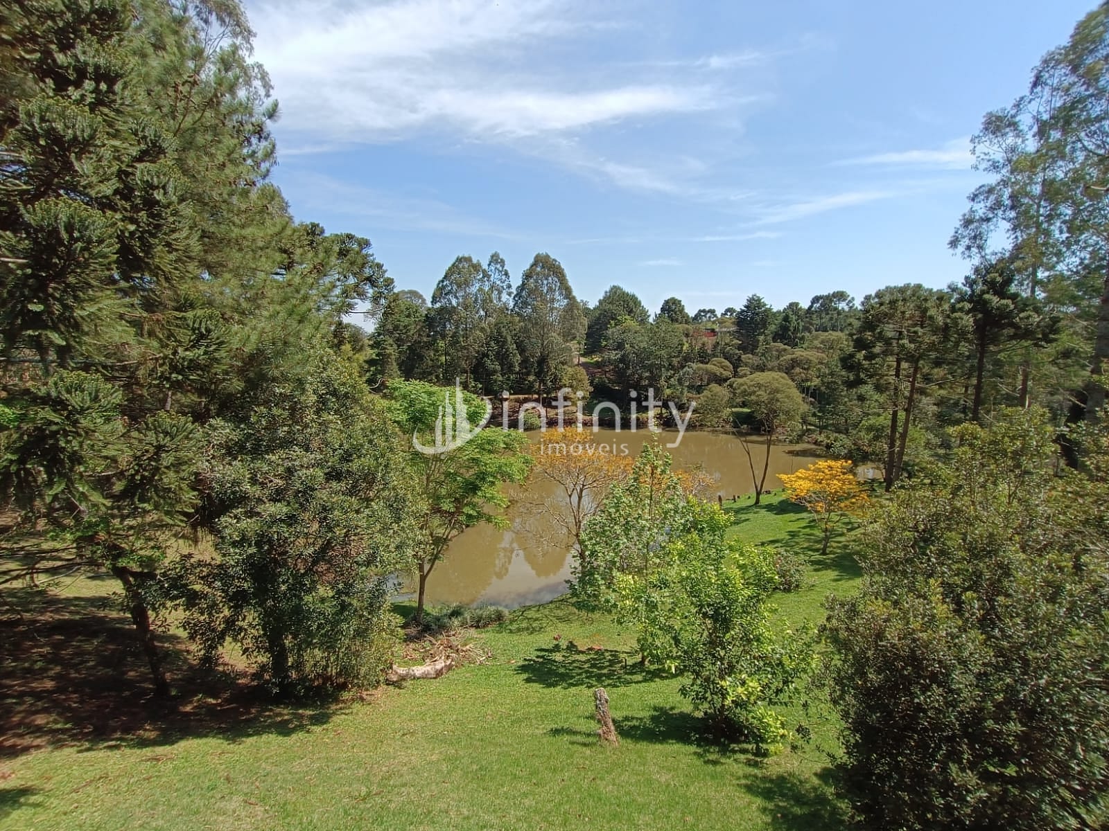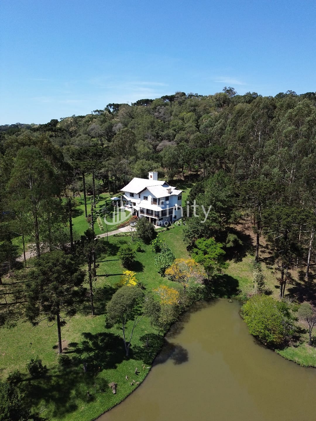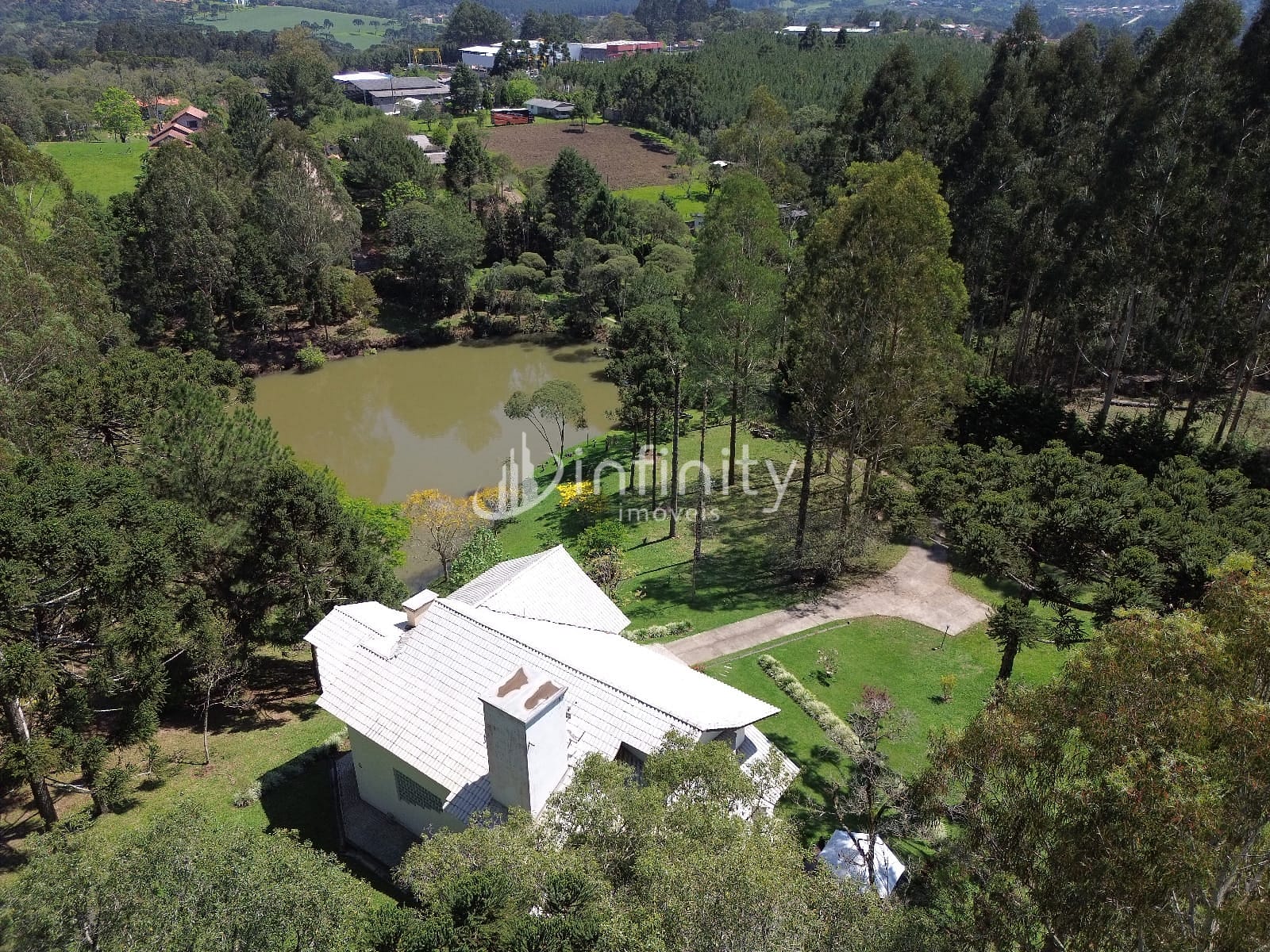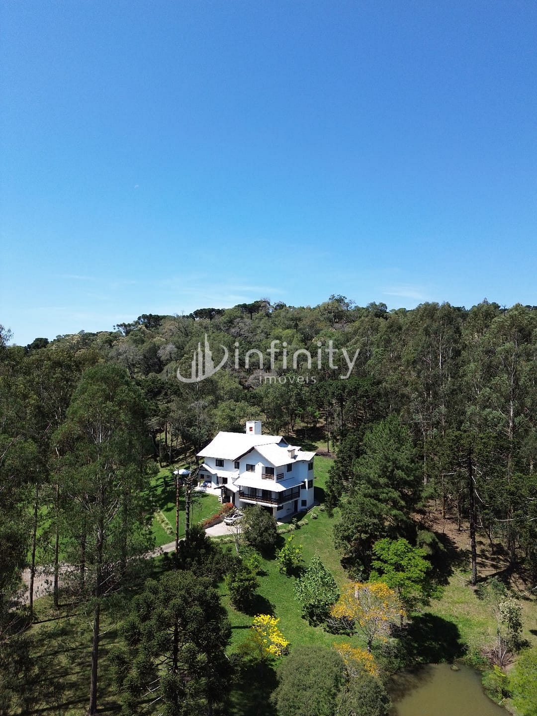 Casa edificada em alvenaria com área de 416,00m² com 02 pavimentos, contendo sala de estar, sala de jantar, sala TV, cozinha, lavabo, escritório, adega, despensa, lavanderia, 05 quartos sendo uma suíte master com hidromassagem e closet. Na parte externa o imóvel possui uma área ampla, lago, garagem coberta, churrasqueira, quiosque, totalmente cercada e câmaras de monitoramento em toda a propriedade.