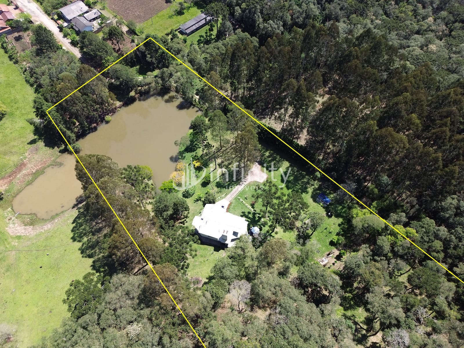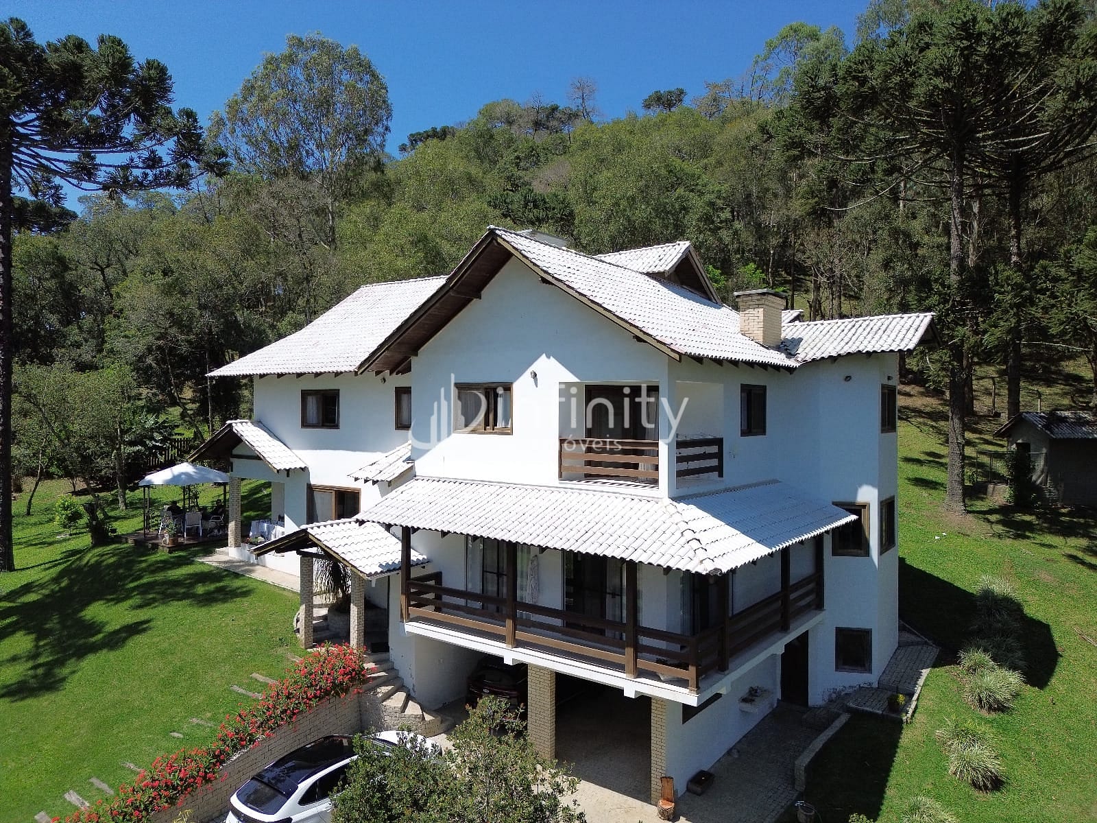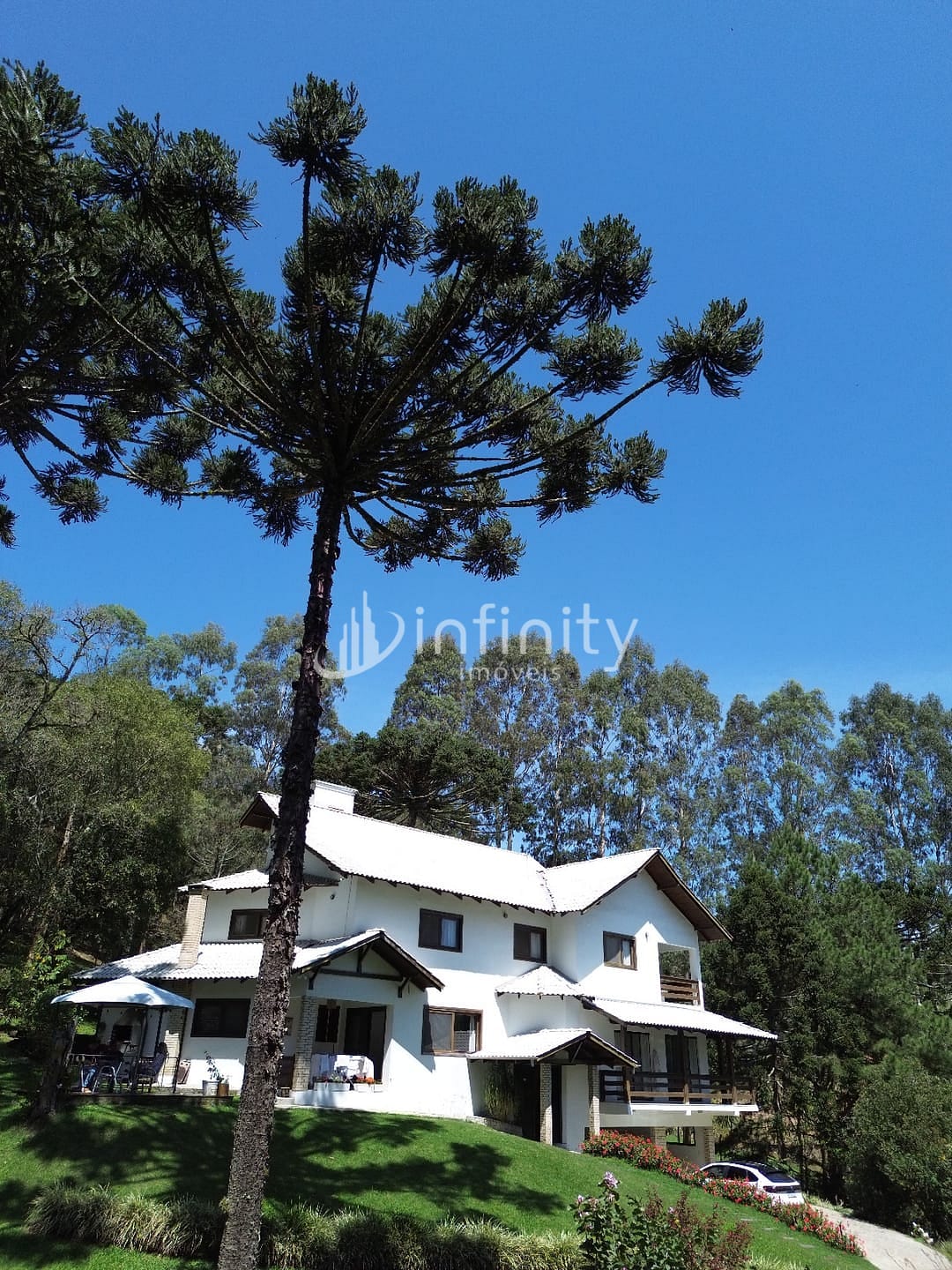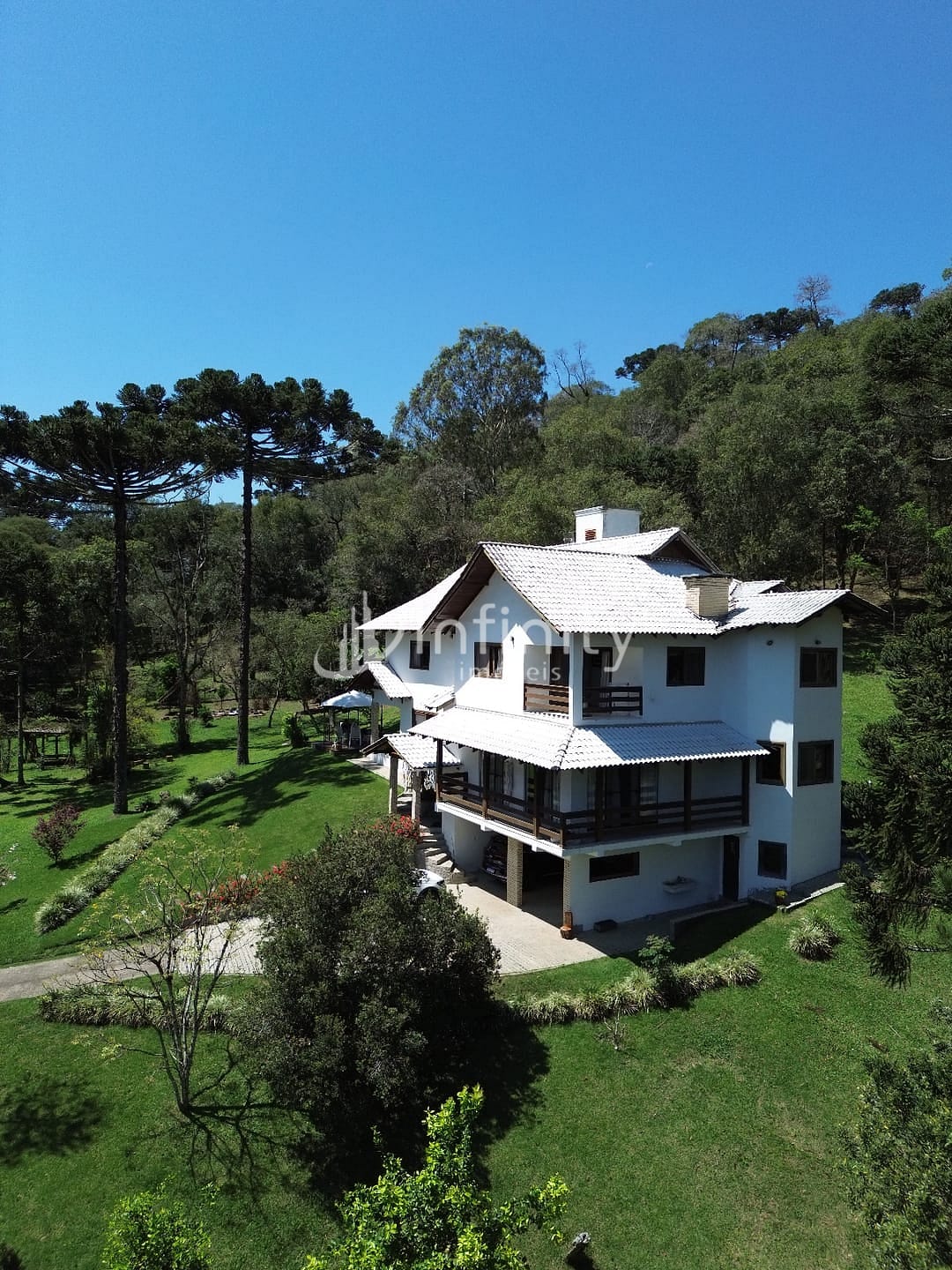 Casa edificada em alvenaria com área de 416,00m² com 02 pavimentos, contendo sala de estar, sala de jantar, sala TV, cozinha, lavabo, escritório, adega, despensa, lavanderia, 05 quartos sendo uma suíte master com hidromassagem e closet. Na parte externa o imóvel possui uma área ampla, lago, garagem coberta, churrasqueira, quiosque, totalmente cercada e câmaras de monitoramento em toda a propriedade.