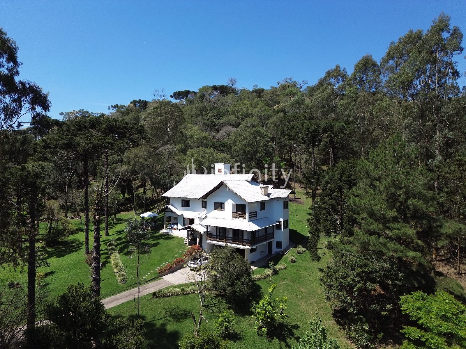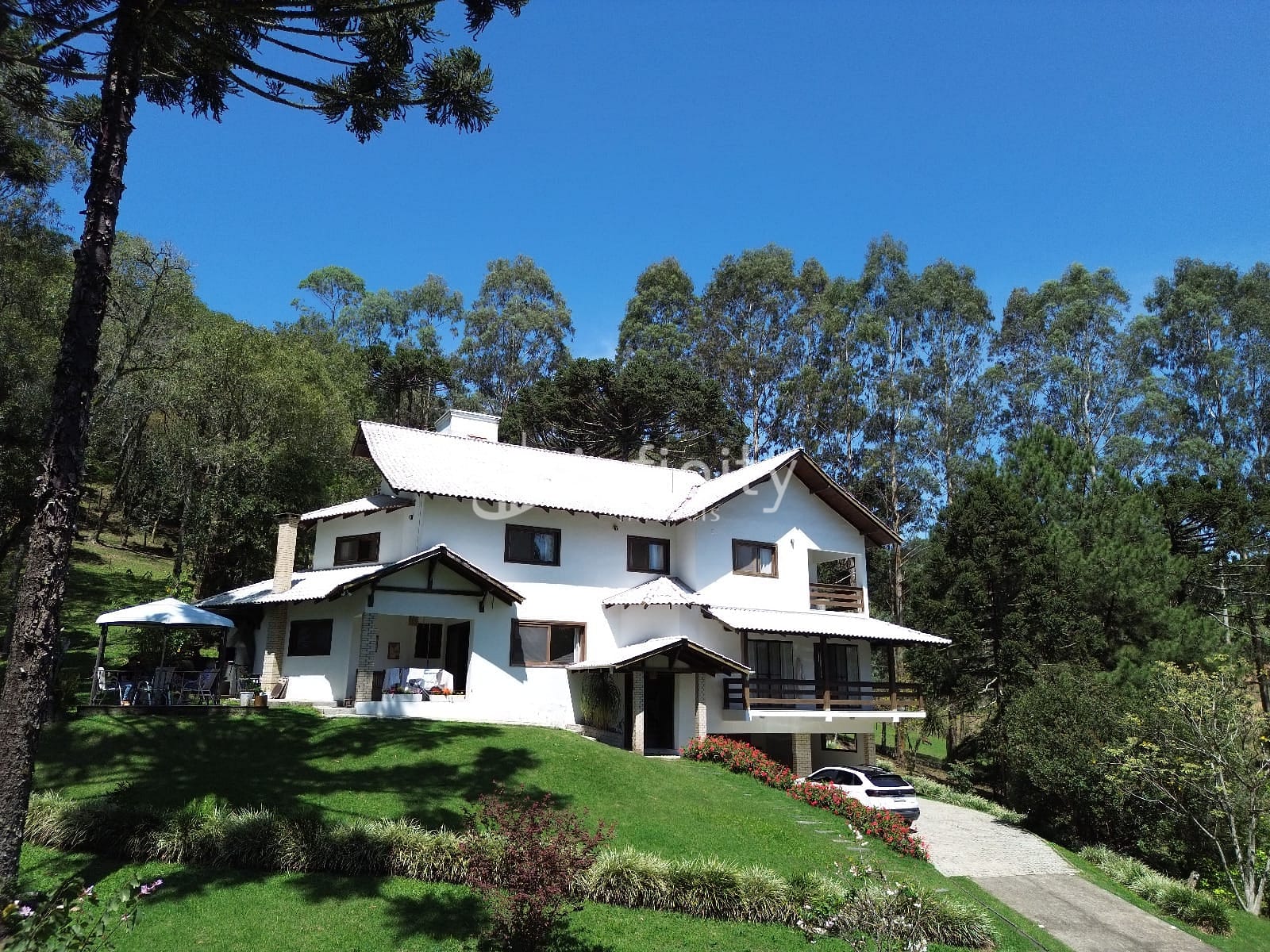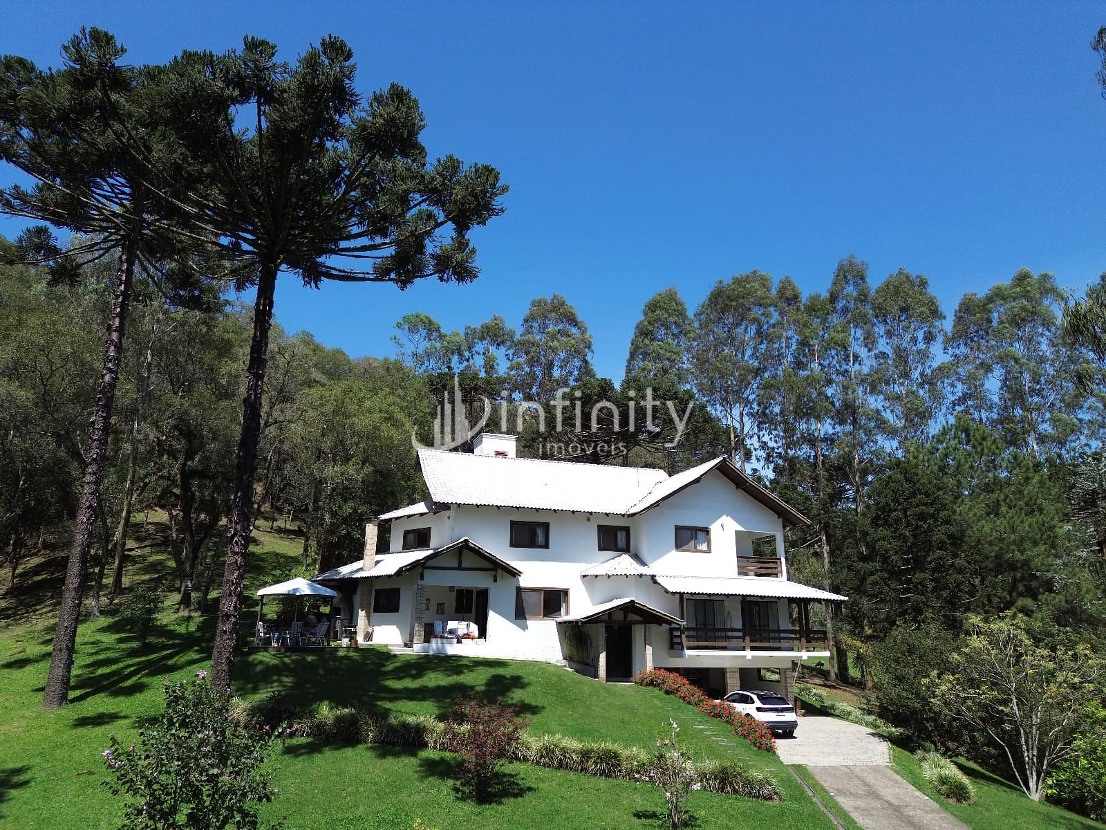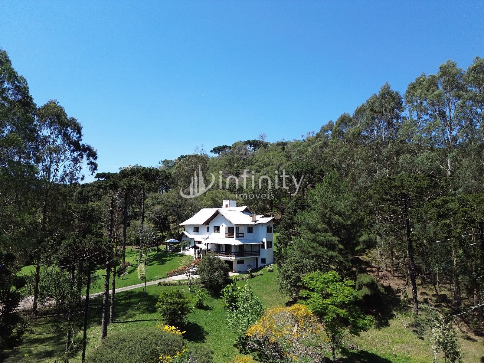 Casa edificada em alvenaria com área de 416,00m² com 02 pavimentos, contendo sala de estar, sala de jantar, sala TV, cozinha, lavabo, escritório, adega, despensa, lavanderia, 05 quartos sendo uma suíte master com hidromassagem e closet. Na parte externa o imóvel possui uma área ampla, lago, garagem coberta, churrasqueira, quiosque, totalmente cercada e câmaras de monitoramento em toda a propriedade.