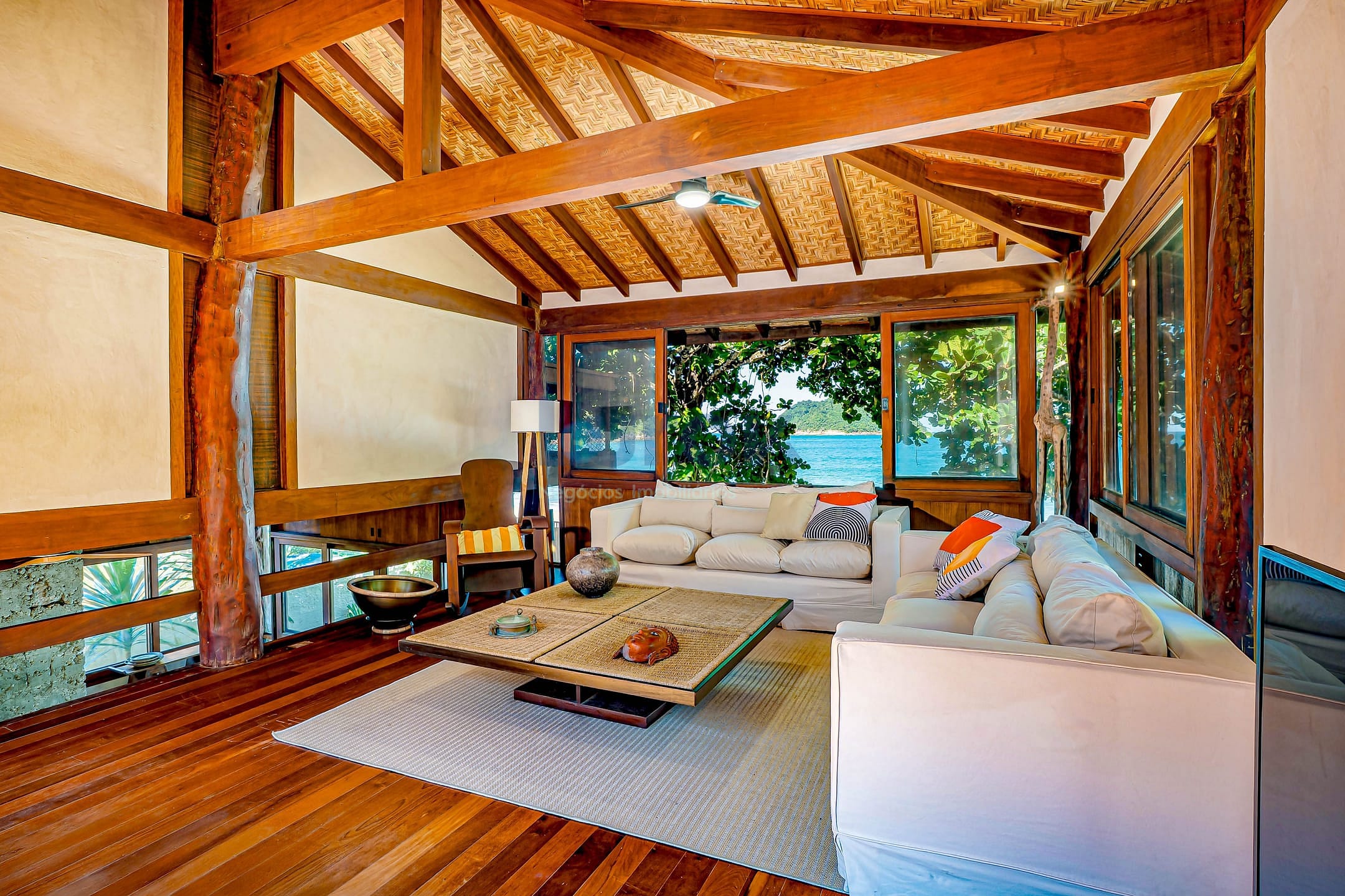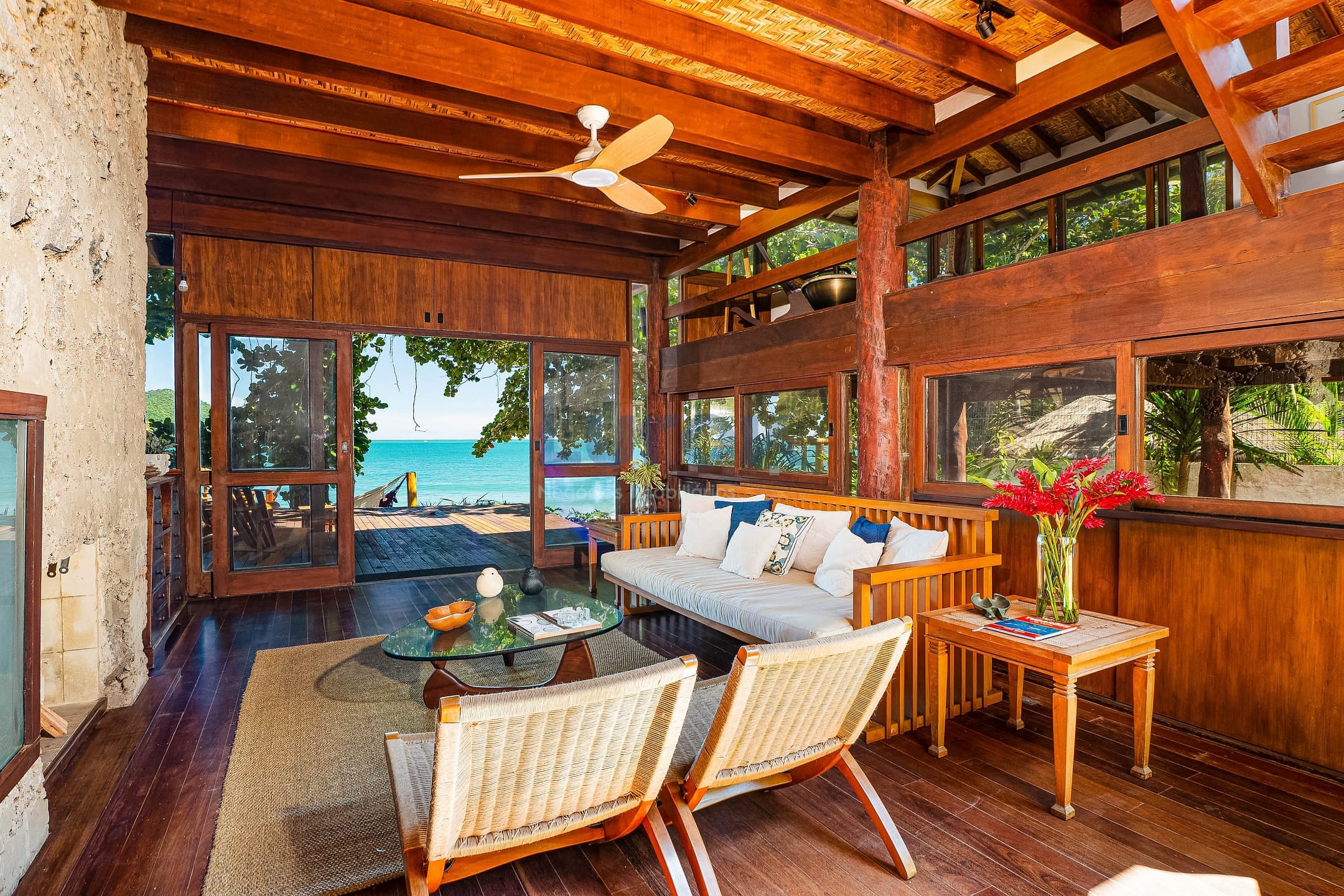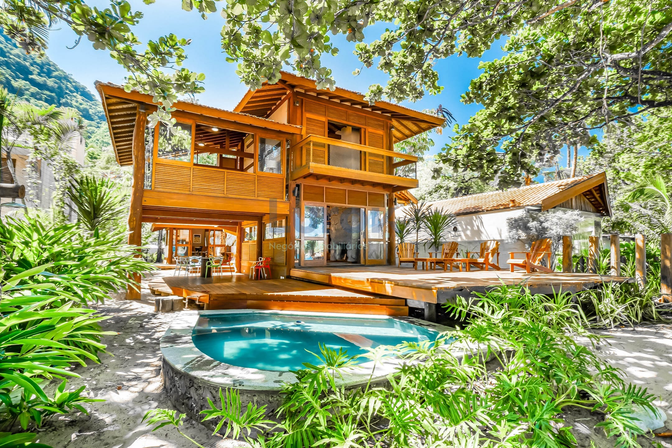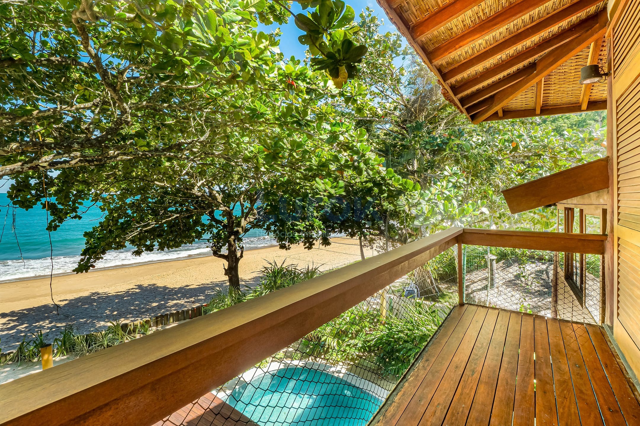 A área externa é um verdadeiro refúgio: deck de madeira com piscina frente ao mar, ideal para momentos de lazer e contemplação. Conta ainda com dependência de empregada reversível e 3 vagas de garagem.