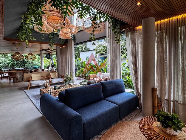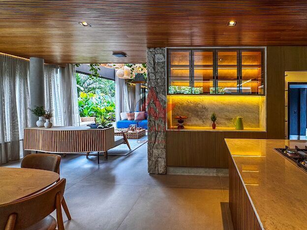e cores quentes traduzem esse espírito, em diálogo com a leveza da brisa e os aromas da mata, essa casa expressa a excelência técnica, mas também as demandas de quem busca no litoral uma residência exclusiva.