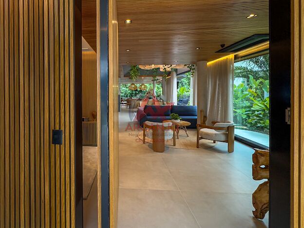 de praia. Seus 445m2 foram pensados para proporcionar conforto absoluto, integração entre ambientes e