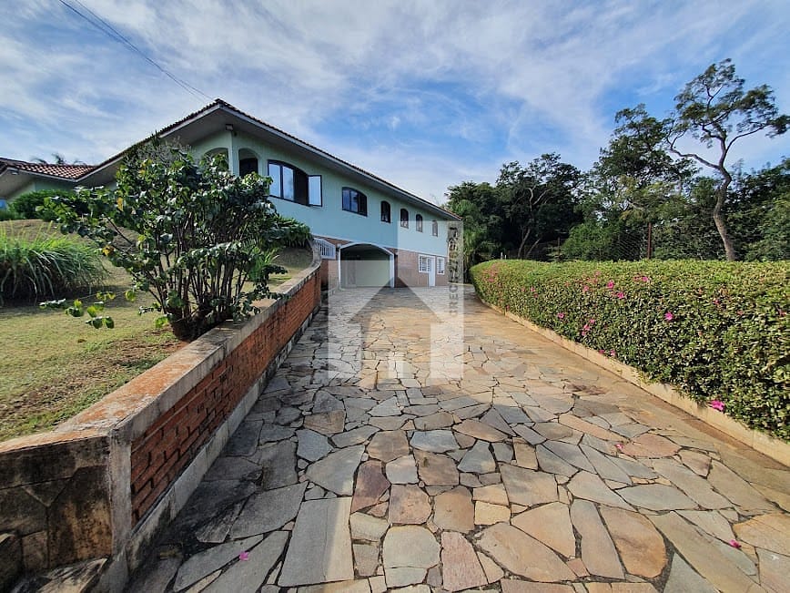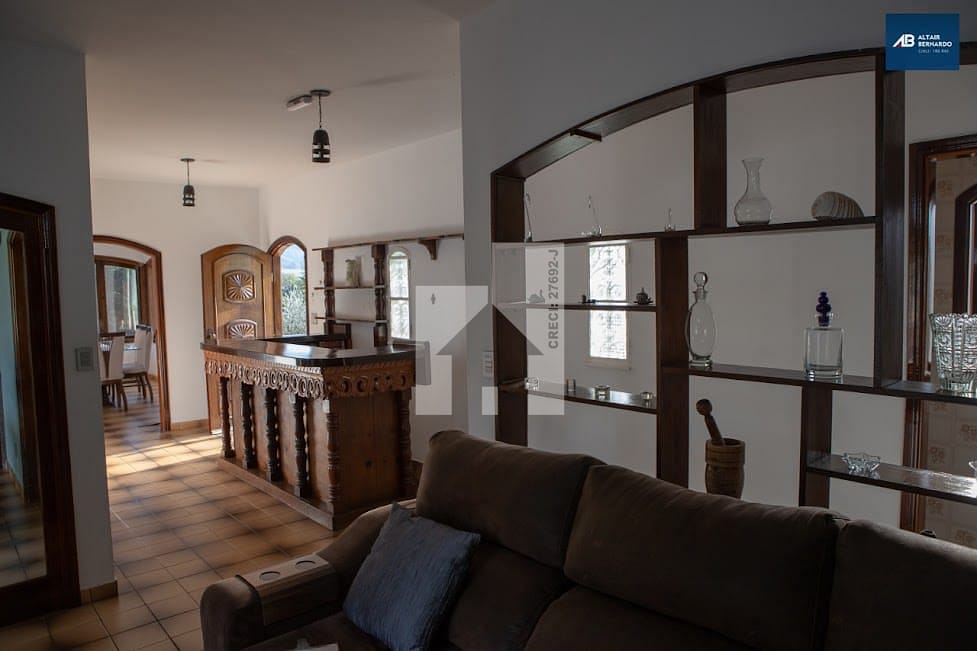 Casa 800m² com 5 Dormitórios, sendo 3 dormitórios com armários embutidos, 2 suítes, 1 com closet amplo dividido com espelhos, 1 dormitório de empregada, Sala de TV ampla com lareira e armário embutido, sala de jantar com portas e janelas com vista privilegiada e barzinho rústico, Cozinha ampla com armários embutidos, despensa e lavanderia coberta, 1 lavabo e 1 banheiro de empregada
