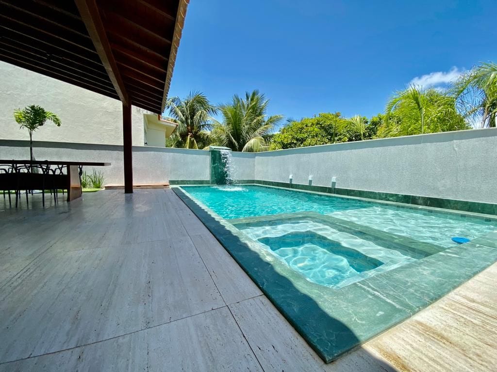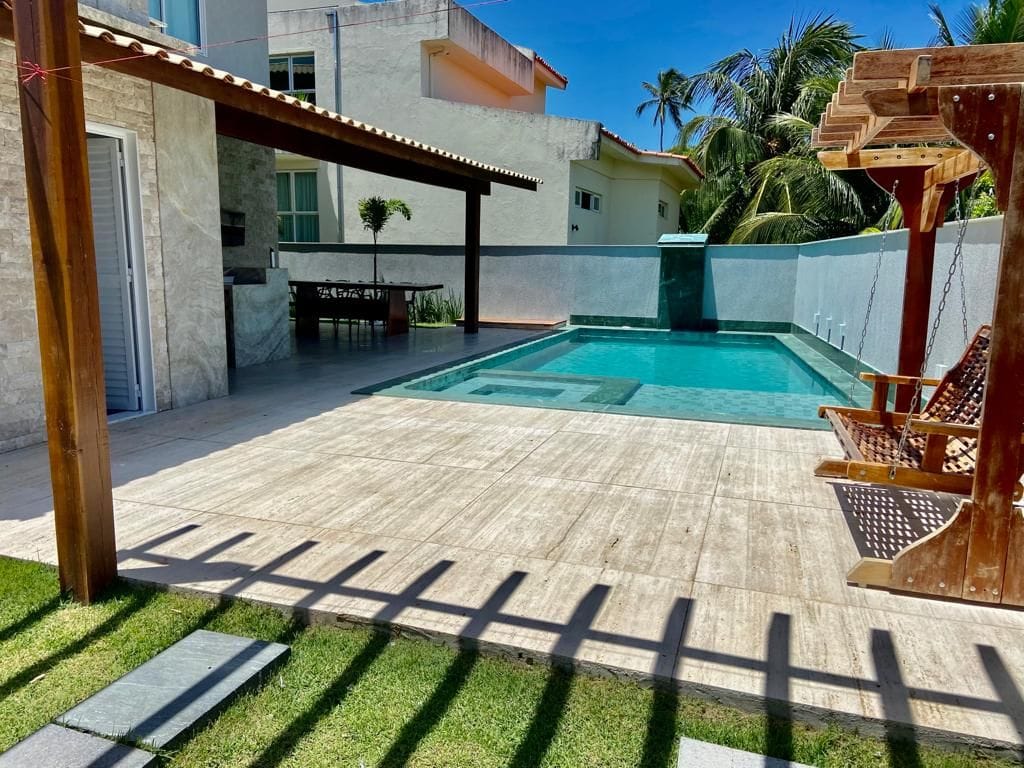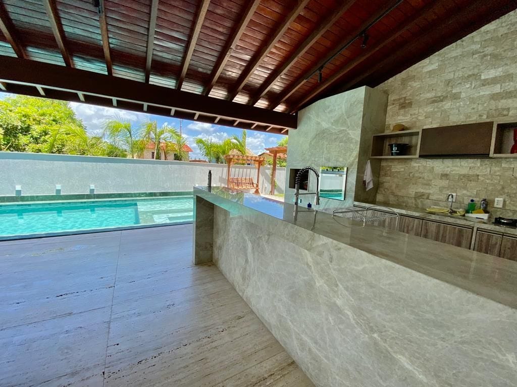 Casa em Muro Alto a venda com 5 quartosVenha desfrutar essa incrível casa a venda em Muro Alto de 1 andar compostas por: Sala ampla Cozinha americana com armários planejados 2 quartos para visitantes no térreo 3 suítes no primeiro andar Suíte master com WC em Granito e iluminação em LED Cozinha externa Piscina Vagas de garagem