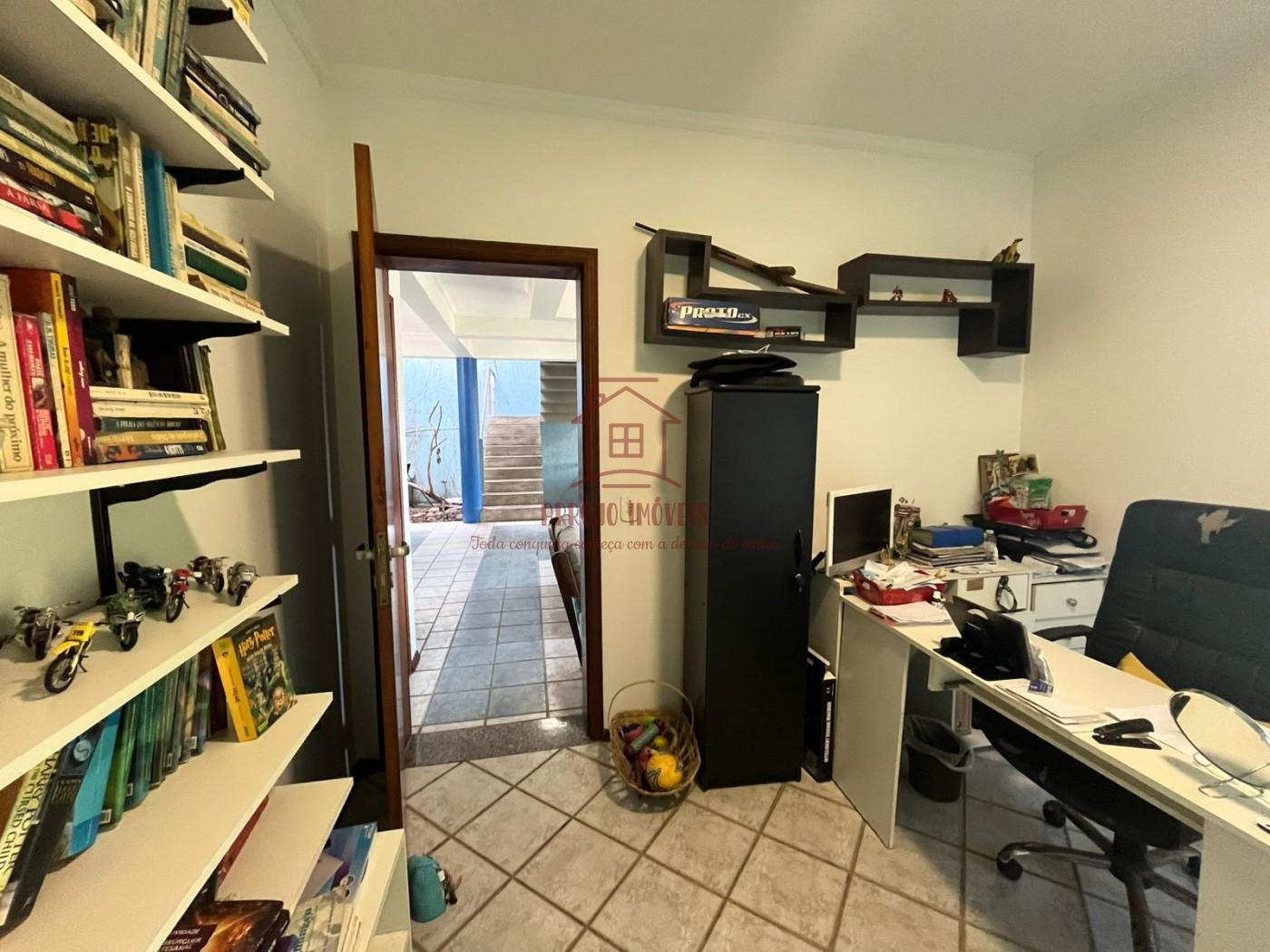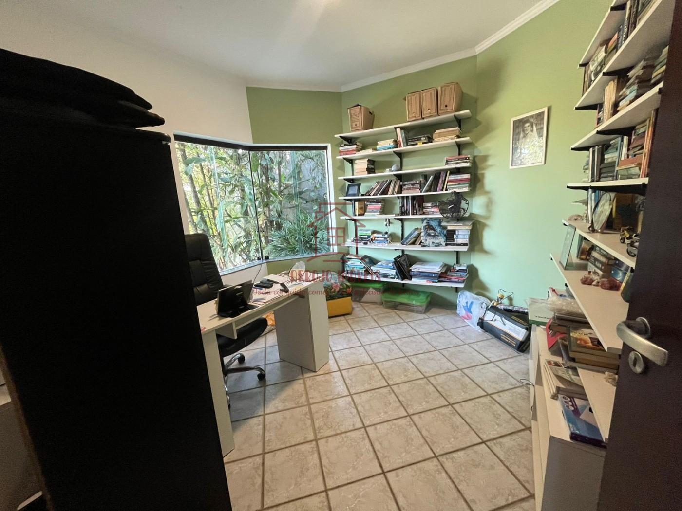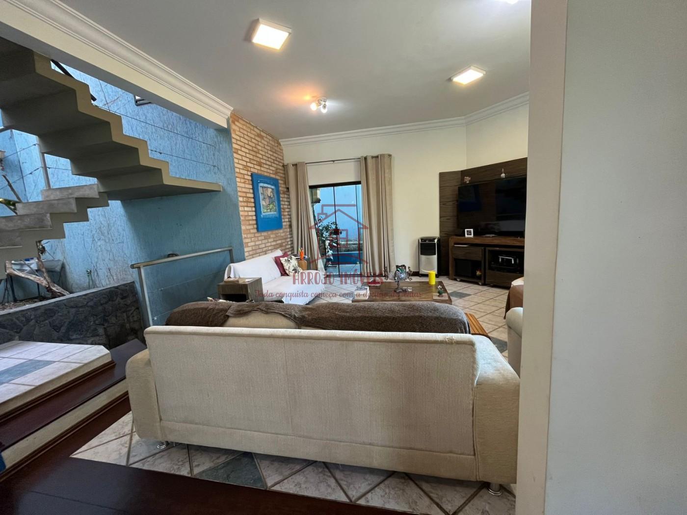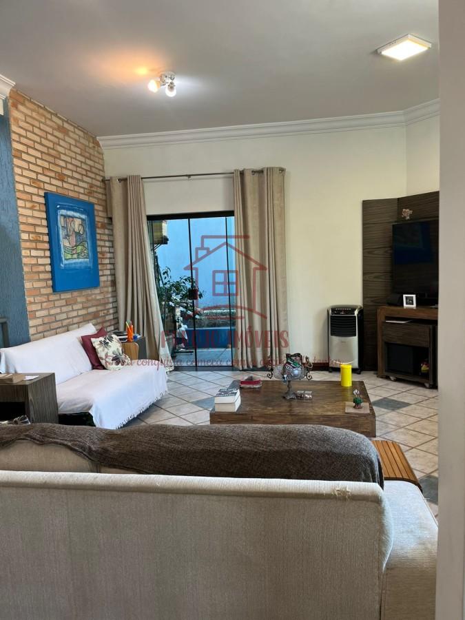 Características do imóvel: 5 dormitórios, sendo 3 suítes, 2 banheiros sociais adicionais, 3 vagas de garagem coberta com entrada e saída interna, oferecendo mais praticidade e segurança, 2 salas de estar, uma delas com pé-direito alto e lareira em alvenaria, Sala de TV espaçosa, com janelas amplas e muita iluminação natural, Sala de jantar com espaço para 8 lugares, Cozinha funcional com acesso direto ao quintal, Piso cerâmico decorado, sancas em gesso e detalhes em tijolo aparente, 1 escritório ao lado da sala de estar.