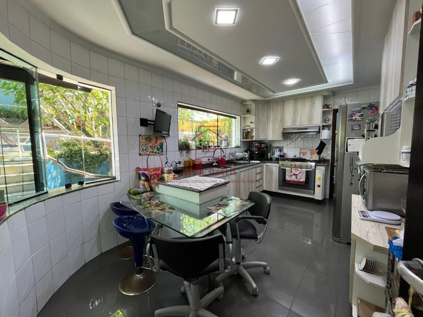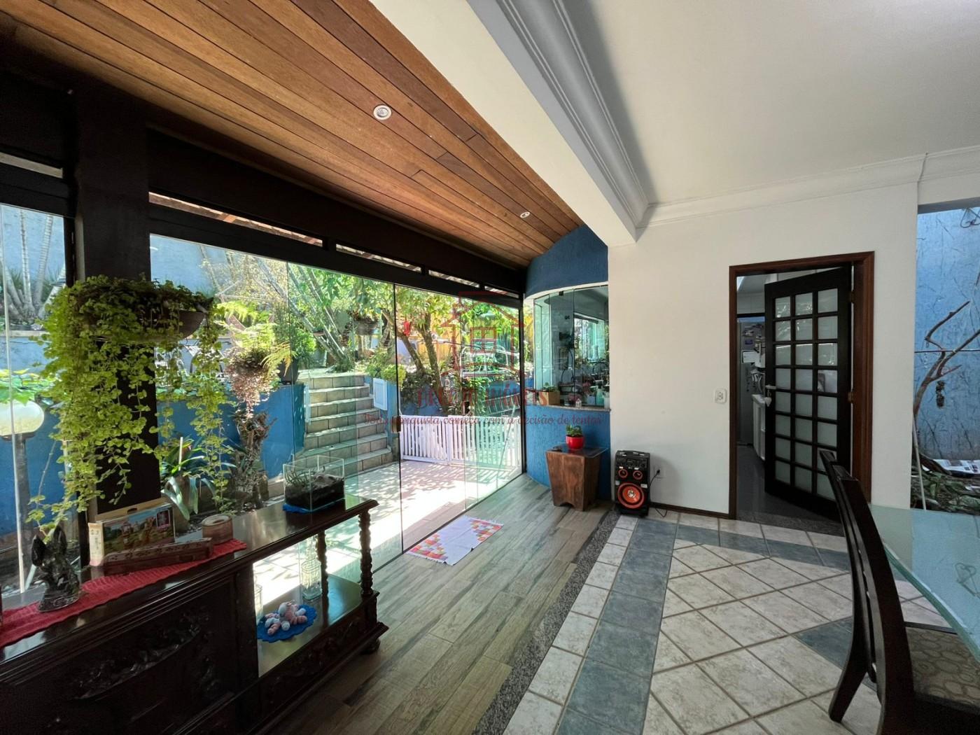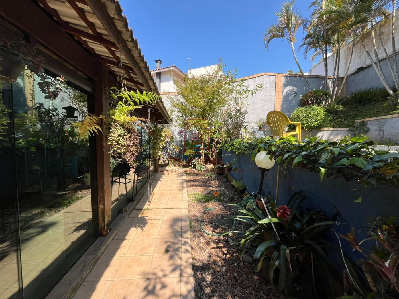 Área externa e lazer: Área gourmet completa com churrasqueira em tijolos, balcão em pastilhas e mesa grande para confraternizações, quintal arborizado com árvores, plantas ornamentais e espaços de descanso, piscina, corredores laterais e ambientes que integram interior e exterior com janelas de vidro amplas, Ambientes bem arejados, ideais para receber amigos e familiares.