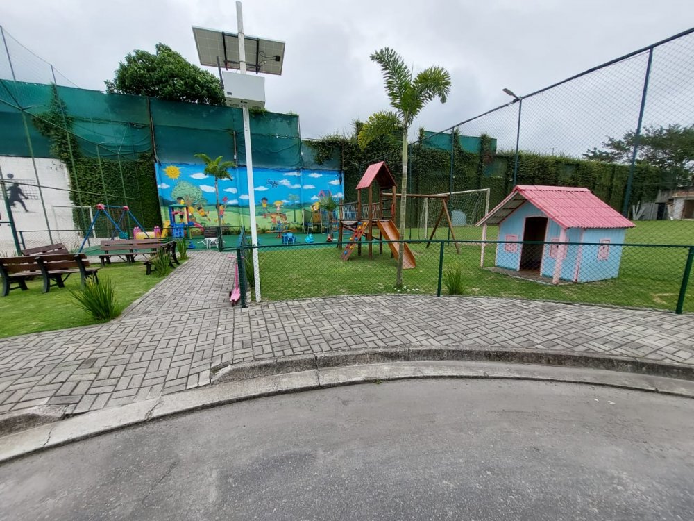 Condomínio com segurança 24h, lazer, campo de futebol, quadras de areia e de tênis e parque infantil.