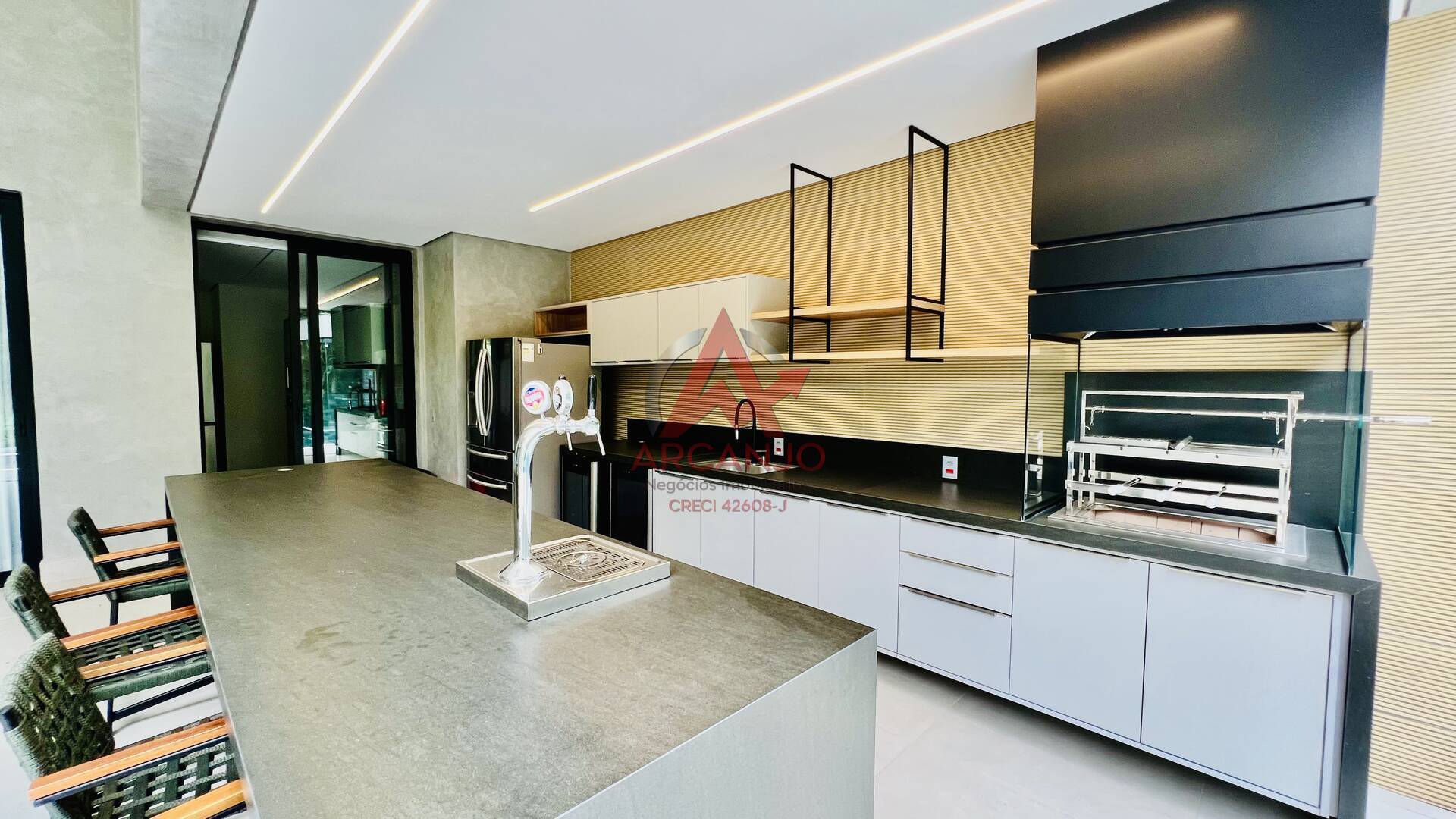 A área externa é um espetáculo à parte, destacando-se pela piscina exuberante com cascata e trocador de calor, sauna, fire place e uma área gourmet completa com churrasqueira. O ambiente é enriquecido por um belíssimo paisagismo que traz um toque de natureza ao espaço. Pensada para atender às necessidades modernas, a casa possui ainda carregador para carros elétricos e acomoda até seis veículos, sendo quatro em vagas cobertas. Cada detalhe foi cuidadosamente planejado para oferecer uma experiência de vida inigualável.