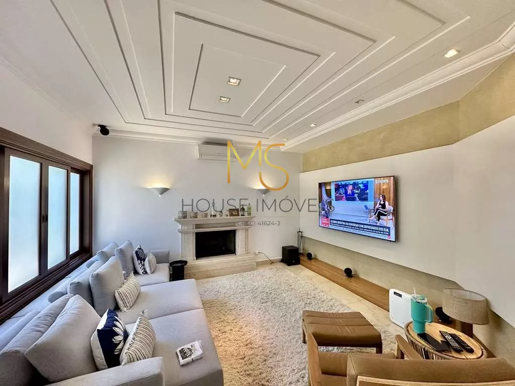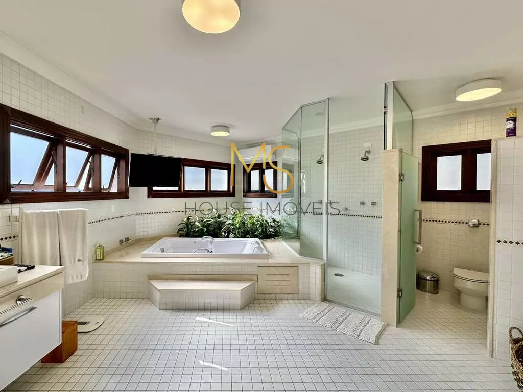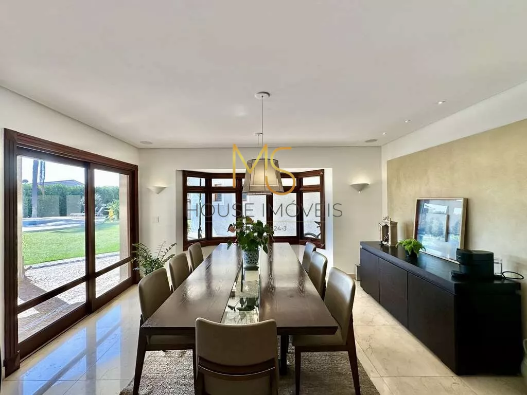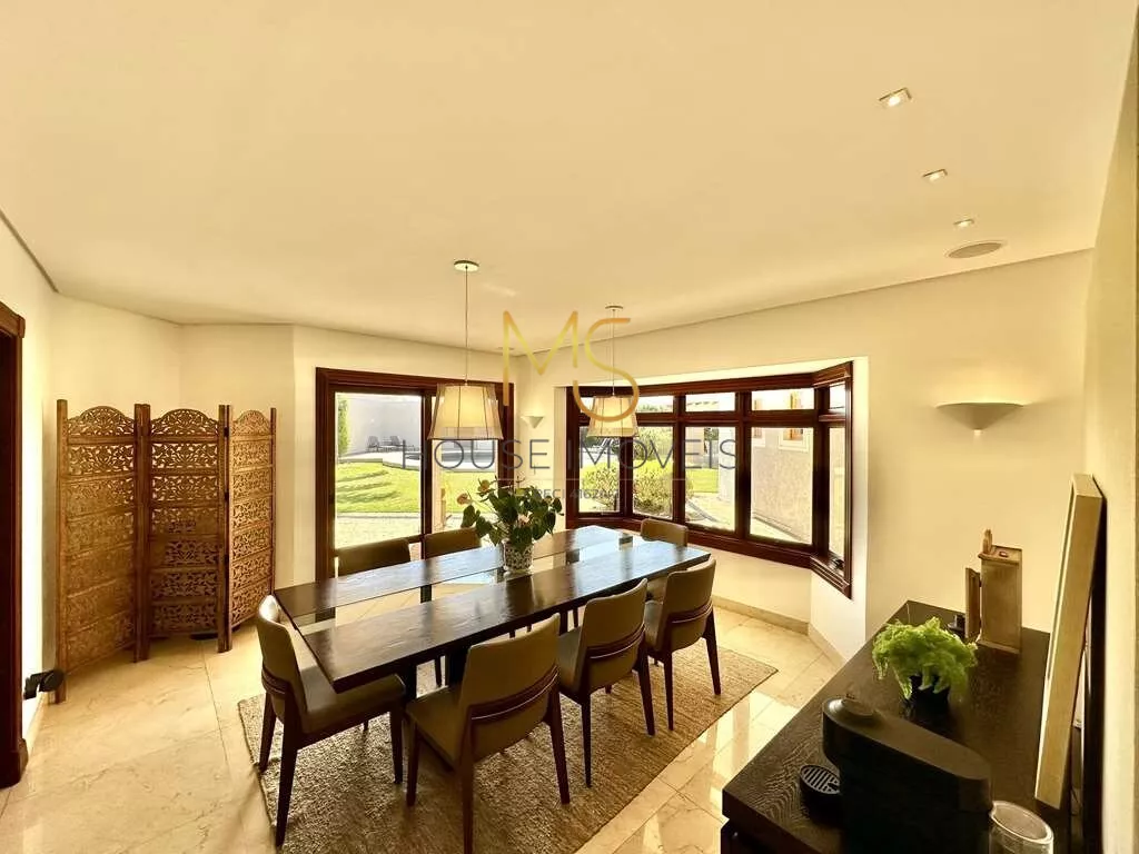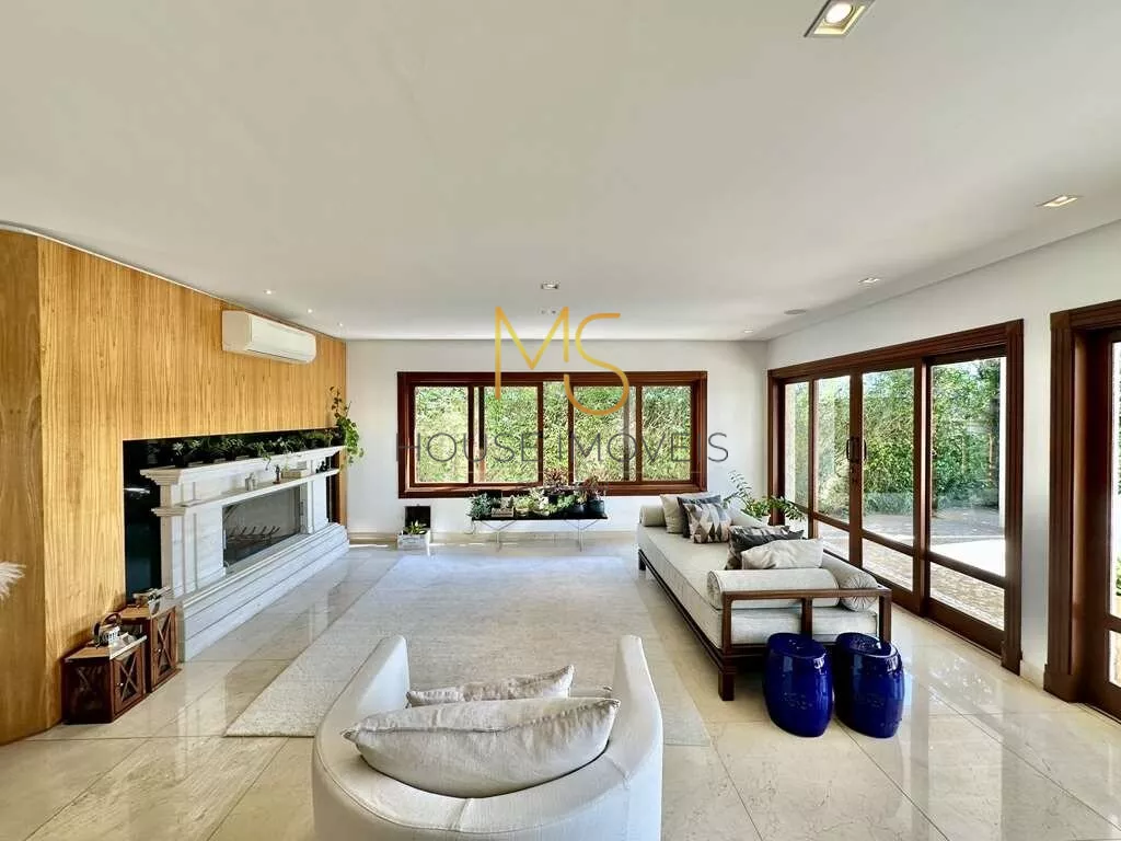 Casa contemporânea integrada, com 5 suítes com closet à vendaO imóvel possui cozinha completa, TVs, home Theather 75, camas em todas as suítes com colchões praticamente novos, ar condicionados em todos os ambientes sociais maioria Q e F, automação Control 4 de 1ª linha: iluminação, vídeo e áudio, pisos em mármore Crema Marfil, sistema de segurança com 16 câmeras e acesso pela internet. 4 acessos: social, garagem, lazer e serviço. Hall de entrada social, escritório planejado e 5ª suíte no térreo, com ar condicionado, lavabo, Hall íntimo com Family Room, home Theather na parte superior, master com hidromassagem. A master plus com sala de banho, contendo aquecedor de toalha, 2 cubas, hidromassagem dupla, estar, lareira, jantar. Área de serviço aberta e lavanderia fechada com 2 tanques, lavadora e secadora 14kg, quartos de serviço com 1 banheiro conjugado, churrasqueira, forno de pizza, fogão à lenha, piscina, prainha, ducha, grande solarium e casa de máquinas, anexo com multiuso, garagem para 11 vagas.agende sua visita