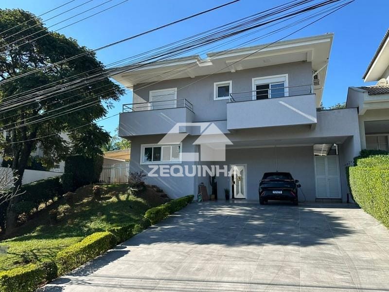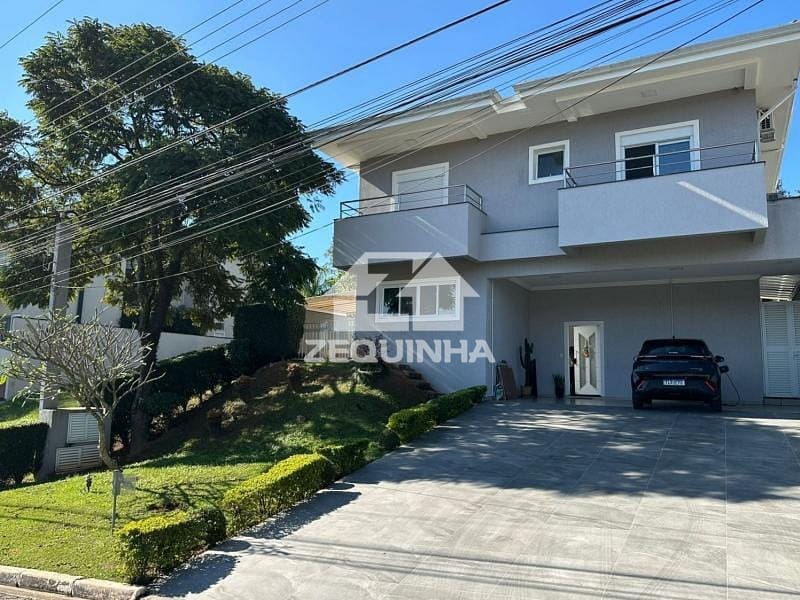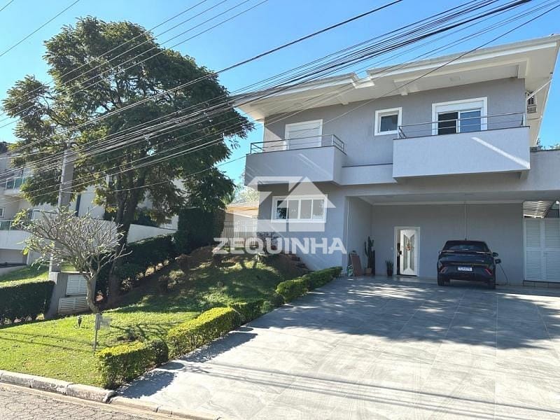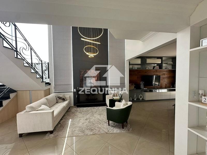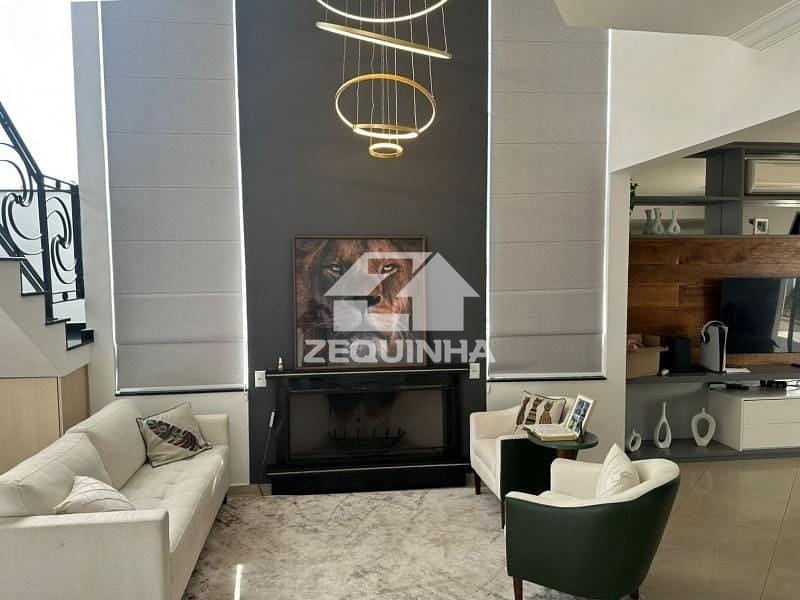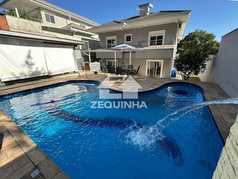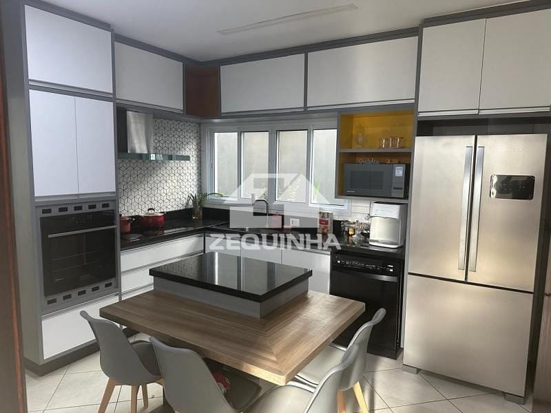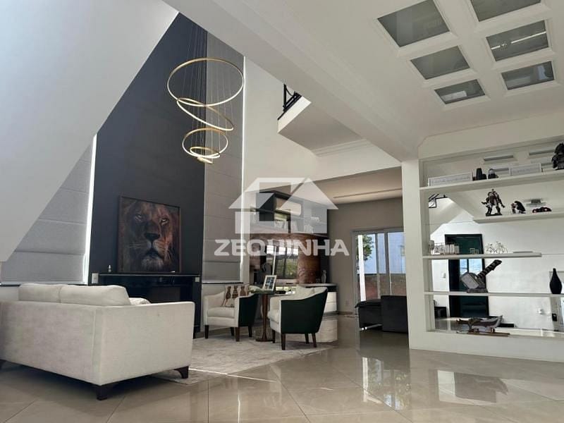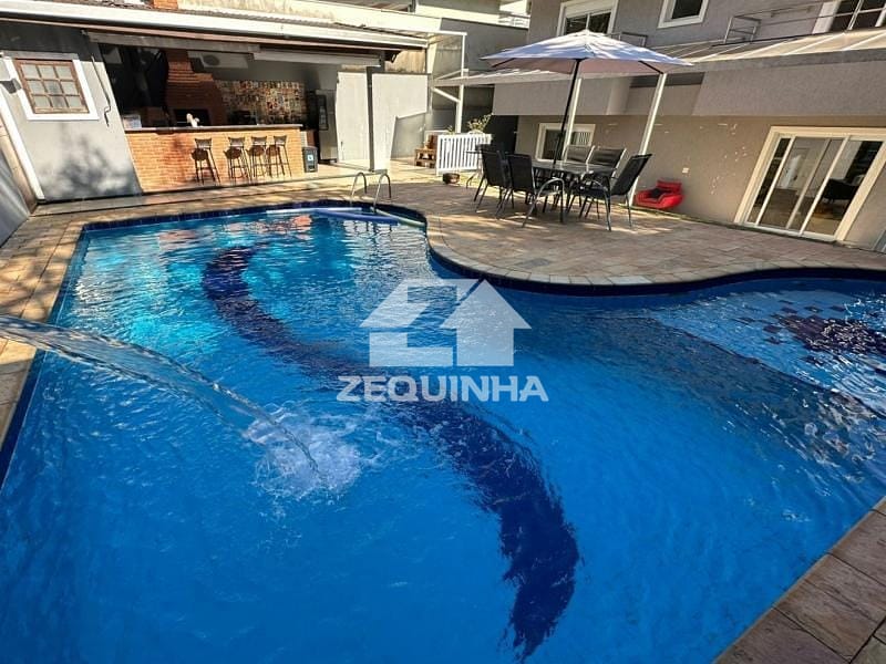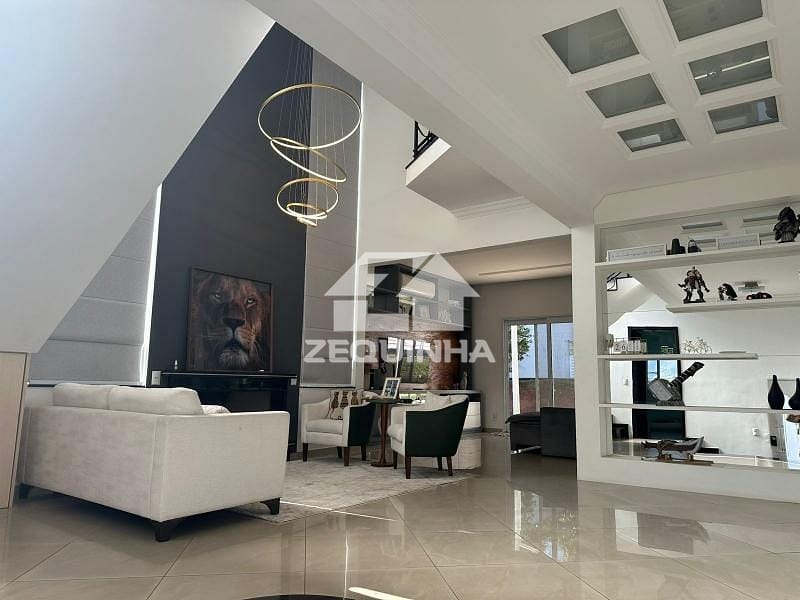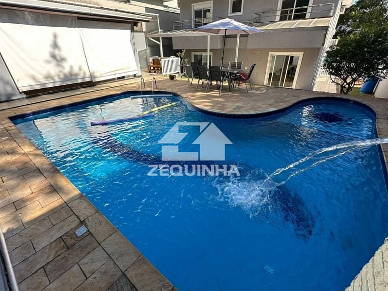 Casa em condomínio com 5 suítes todas com sacada, em todos os quartos tem moveis planejados, 6 banheiros, sala de estar, sala de tv, sala de jantar, cozinha e area de serviços repleta de armarios, piscina, churrasqueira, toda casa em piso frio, 9 vagas de garagem sendo 3 cobertas.