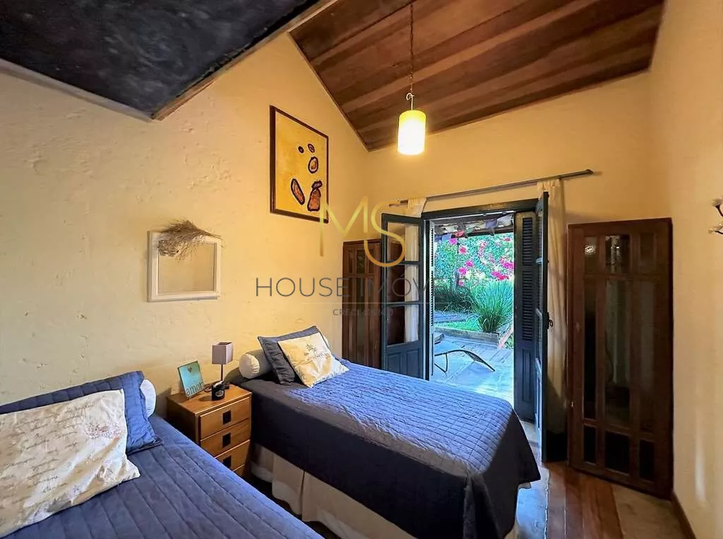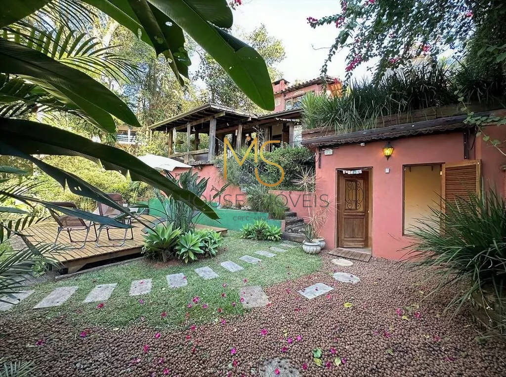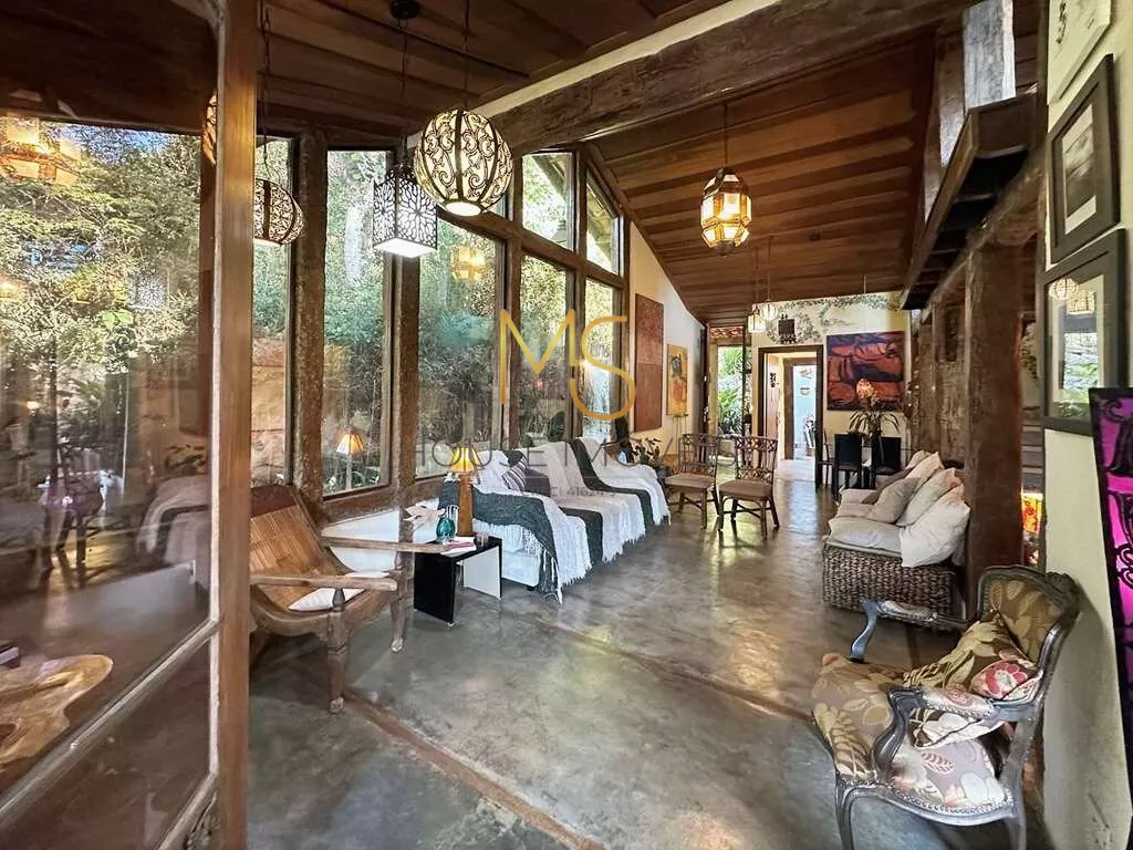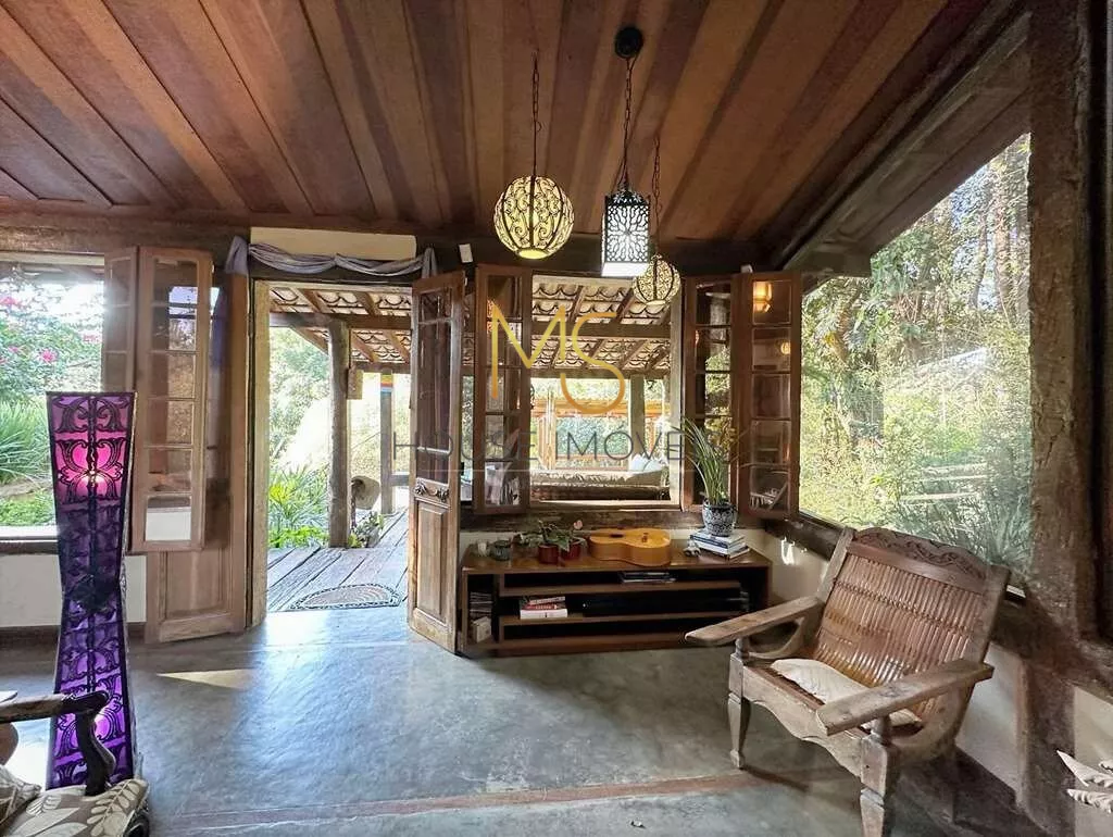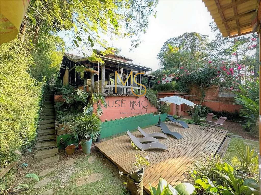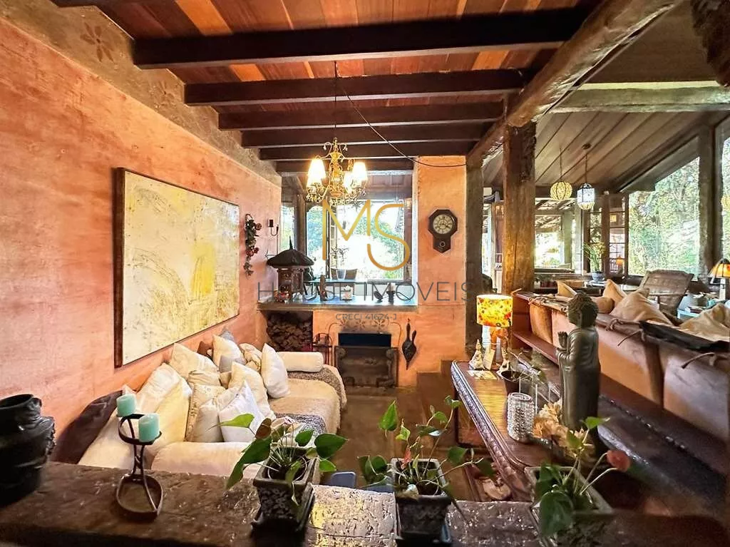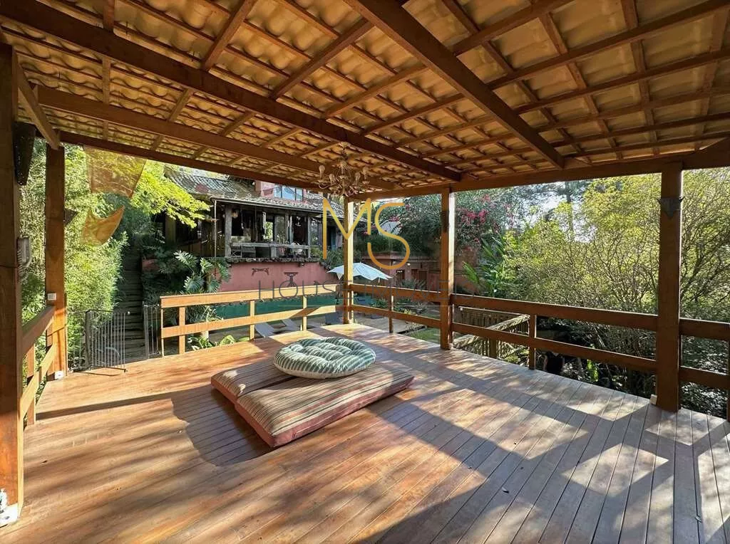 Casa rústica à venda com 5 dormitórios, sendo 3 suítes.O imóvel possui 3 dormitórios, sendo 2 com armários, 1 com porta balcão para varanda e a suíte com mezanino, closet, terraço e vista, banheiros com espelhos, sendo a máster com azulejo hidráulico 2 cubas e hidro, piso superior com espaço multiuso: Ideal para dormitório, escritório, TV, living envidraçado para 4 ambientes voltados para varanda, estar, lareira jantar, bar, cozinha com sala de almoço. Escritório anexo, reversível para 1 quarto de hóspedes. Lazer anexo, gazebo integrado à natureza, piscina, revestida em ladrilho hidráulico, desativada e fechada por um grande deck solariam de madeira. Espaço Multiuso ideal para SPA e sauna, ofurô, massagem, academia. Ou brinquedoteca.Anexo de hospedes 1 LOFT DA MATA na parte de baixo do terreno Envidraçada, 4 cômodos: sala, cozinha, quarto e banheiro, lavanderia com tanque, deposito para ferramentas, oficina. Anexo de hospedes 2 LOFT DAS MANDALAS (na parte de cima do terreno), sala e quarto com bancada em madeira, banheiro com gabinetes, área de serviço externa com tanque.agende sua visita