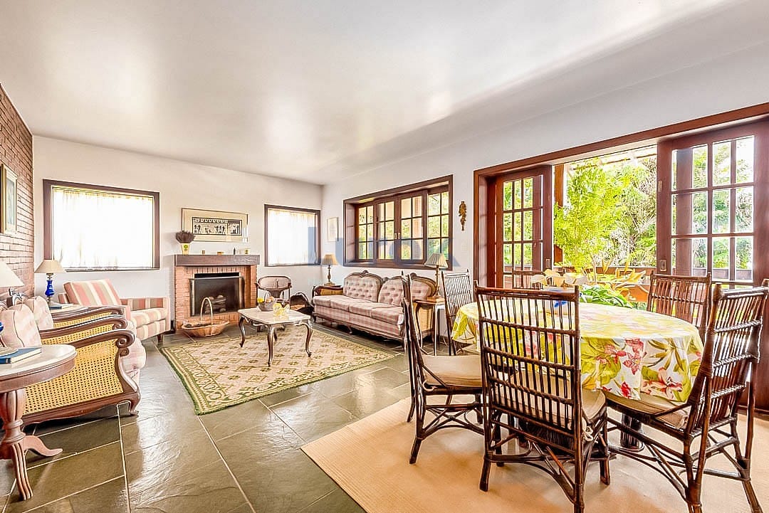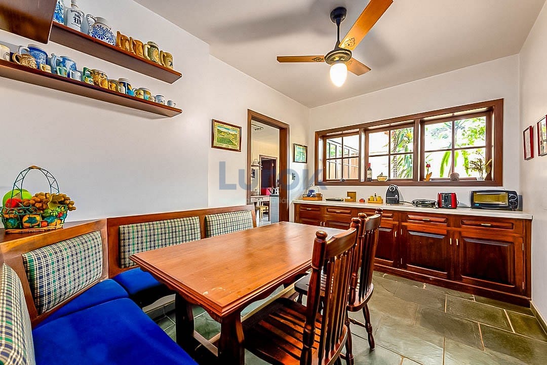 A casa conta com 6 suítes amplas, todas finamente decoradas e preparadas para proporcionar conforto absoluto aos hóspedes. Há também uma suíte adicional para funcionários, garantindo total praticidade durante a estadia.