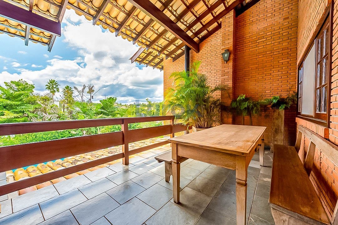 Varanda coberta com vista encantadora para o entorno verde