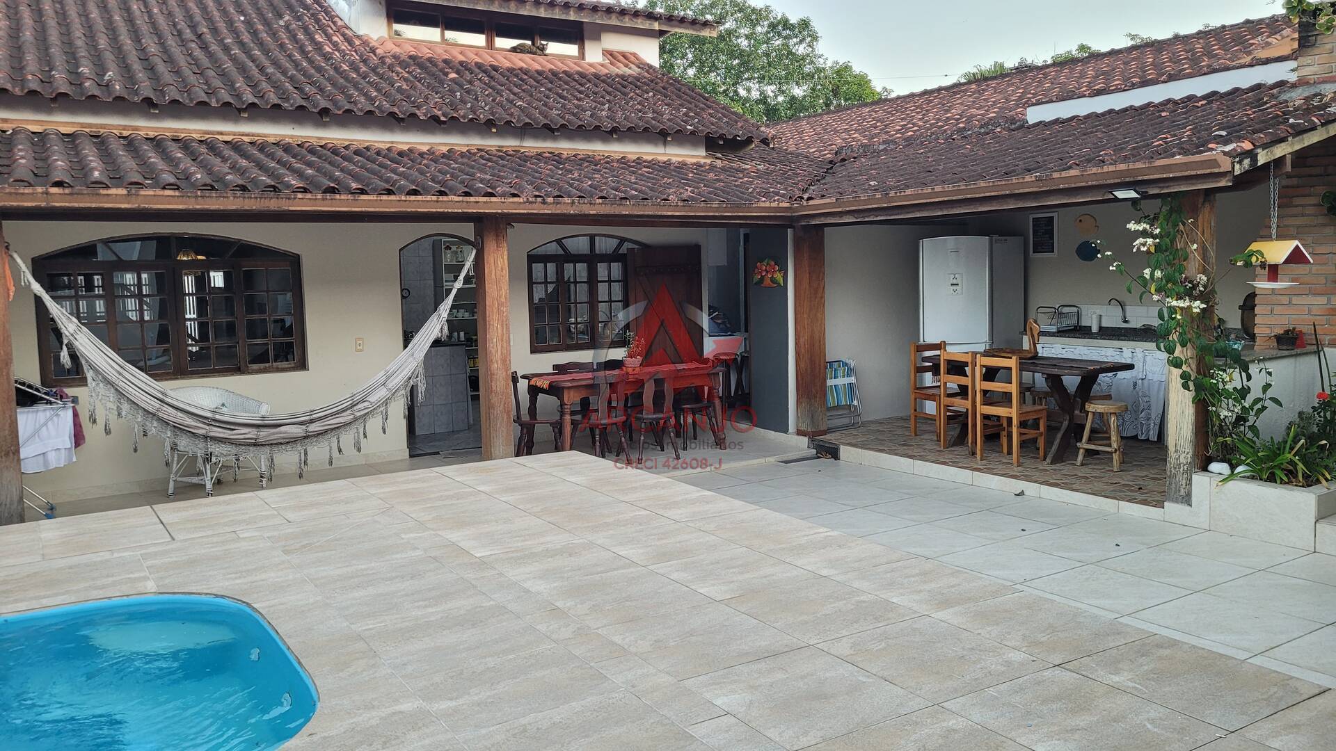 Nos fundos da casa tem uma ampla área de lazer, com espaço gourmet (churrasqueira), piscina, ducha, varanda 1 Edícula com amplo dormitório, banheiro e espaço para reativar uma sauna + 1 quarto de despejo Um lindo jardim, vaga para 4 carros (2 cobertas)