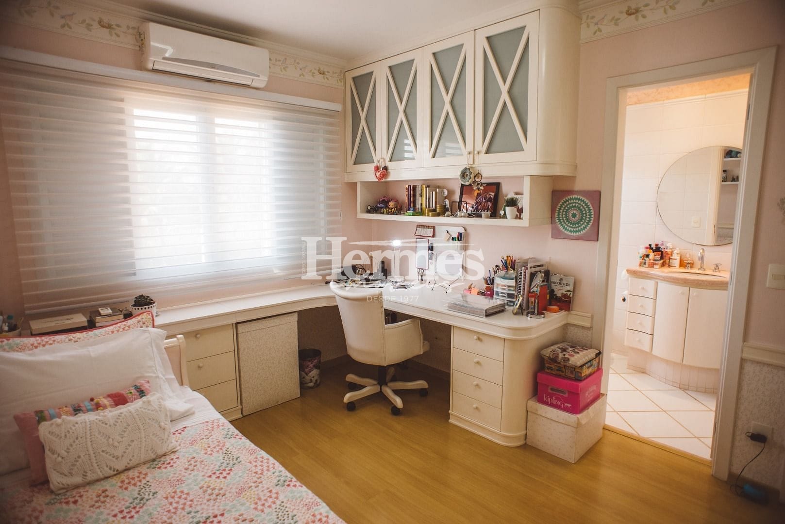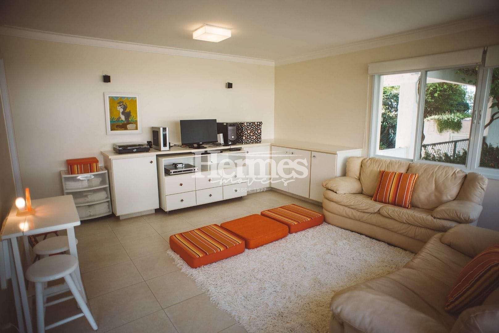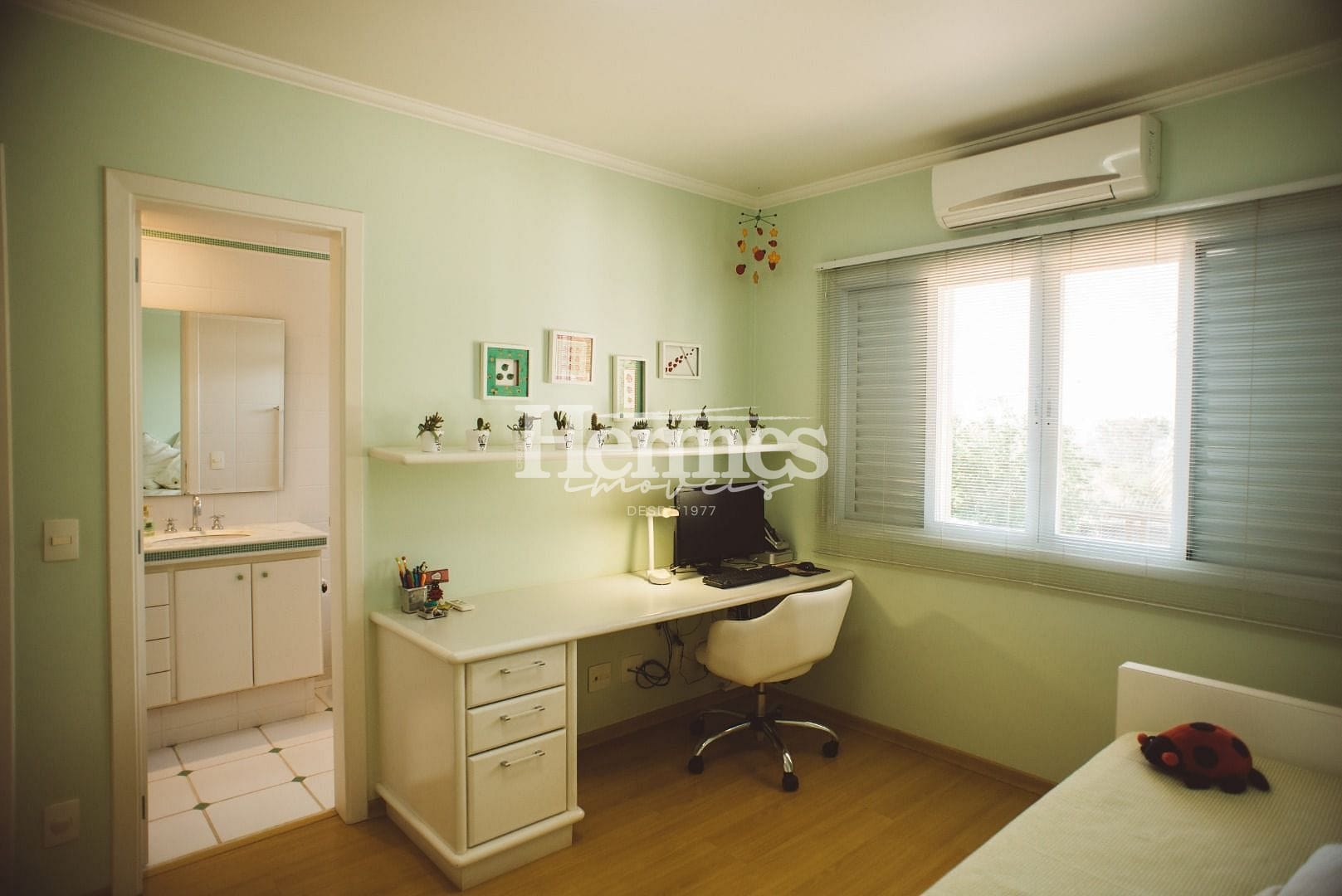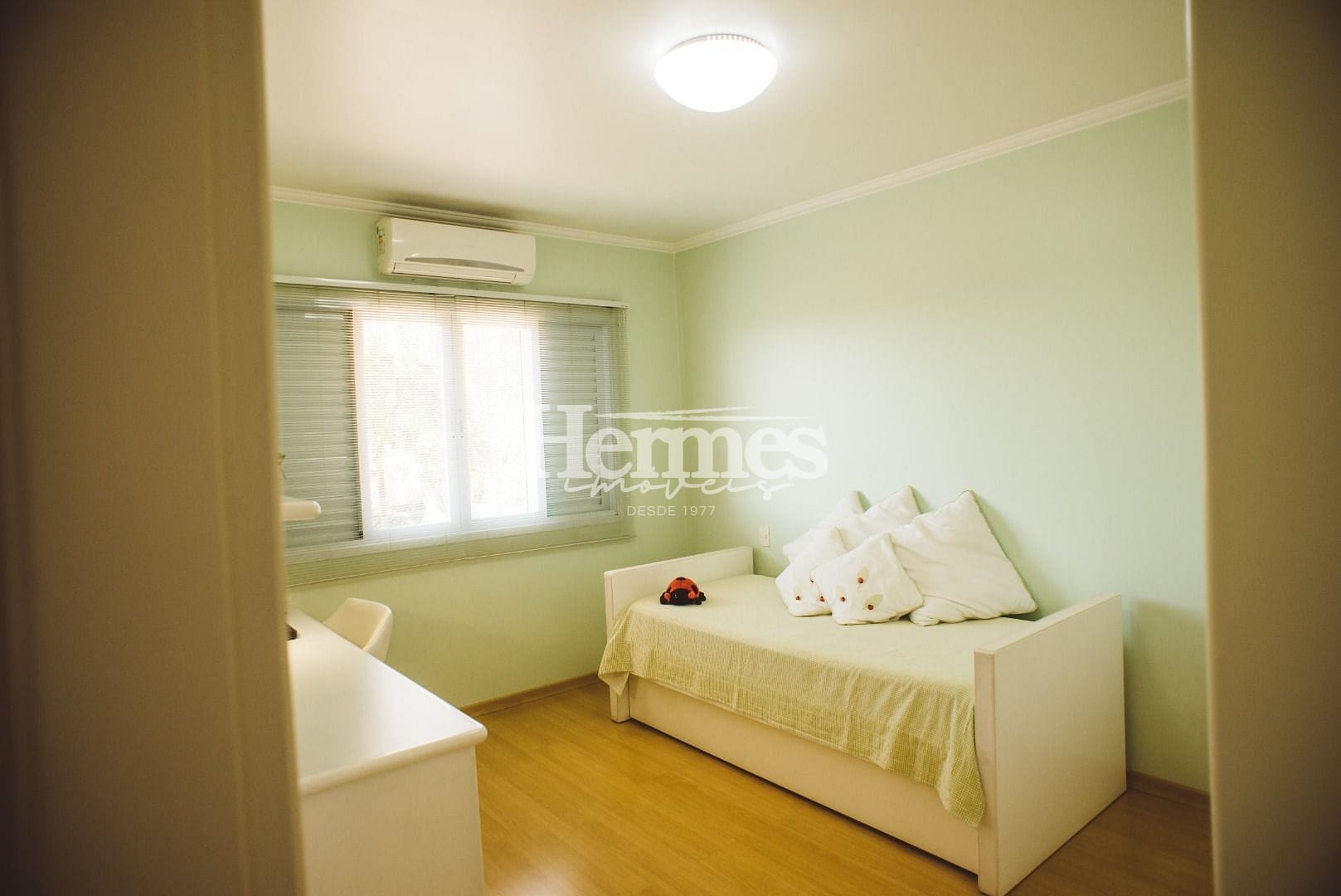 No pavimento superior, você encontrará uma sala íntima planejada, que pode ser utilizada como uma área de descanso e convívio entre os moradores. Todos os ambientes da casa possuem ar-condicionado, garantindo conforto térmico em todas as estações do ano.