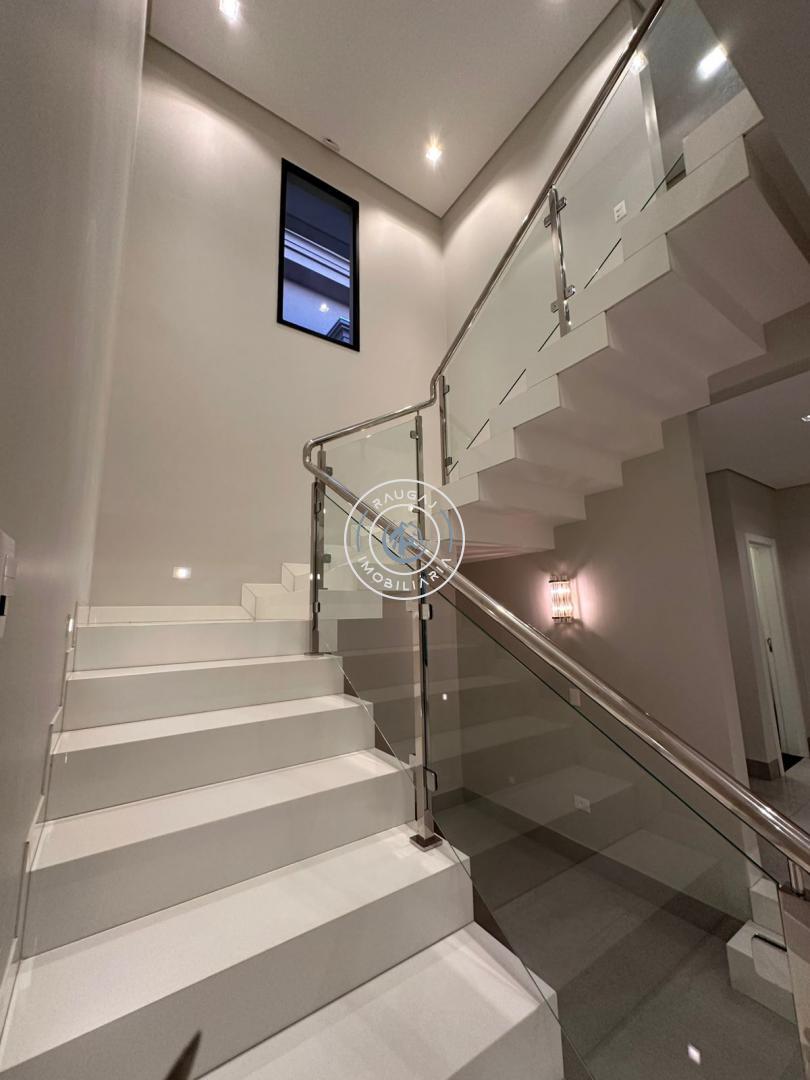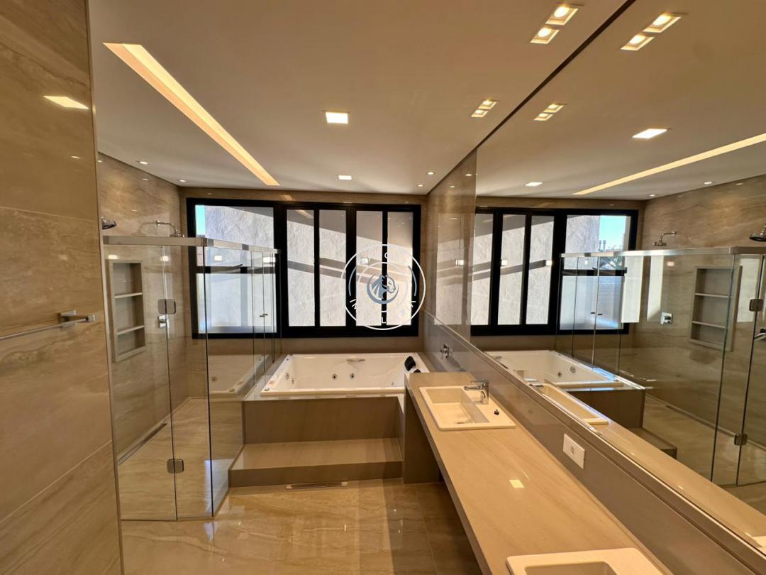 Seja bem-vindo ao Residencial Damha 1, este sobrado em condomínio fechado oferece 6 dormitórios, incluindo 5 suítes e 7 banheiros, garantindo espaço e conforto para toda a família. Com uma área construída de 502m² em terreno de 550,55m² o imóvel possui diversas características, como espaço closet, hidromassagem e sacada na Suíte Master. Sala dois ambientes, escritório com planejados e lavabo ao lado do hall de entrada. Na área gourmet com churrasqueira estilo Parrilla, temos bancadas com armários e infraestrutura para chopeira/torre embutida com tomadas, painel de TV, ar condicionado cassete, WC lavabo/piscina. Cozinha e área de serviço bem estruturadas com móveis planejados, bancadas em granito. Armários externos com portas no corredor de serviço da casa. Geração de energia fotovoltaica em funcionamento, jardinagem com irrigação automatizada, piscina com 2 cascatas, prainha e hidromassagem, iluminação em led, copa e brinquedoteca no piso superior, Desde o pavimento térreo foi considerado espaço com infraestrutura para instalação de elevador, as portas dos dormitórios com esquadrias em alumínio possuem tela mosquiteiro e, assim como as janelas, são com persianas automatizadas, portas internas laqueadas, ar condicionado em toda casa e muito mais. Além disso, o condomínio oferece lazer completo, com portaria e segurança 24 horas, quadra poliesportiva, beach tennis, academia e áreas verdes. Aproveite essa oportunidade única de viver em um local tranquilo com altíssimo padrão de acabamento.