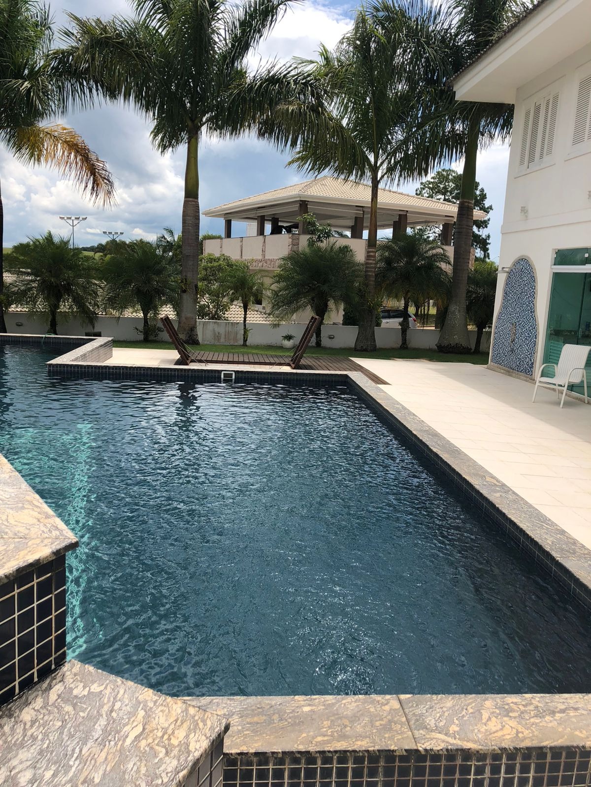 área total do terreno a casa conta com 6 suítes, 7 banheiros, 8 vagas de garagem.