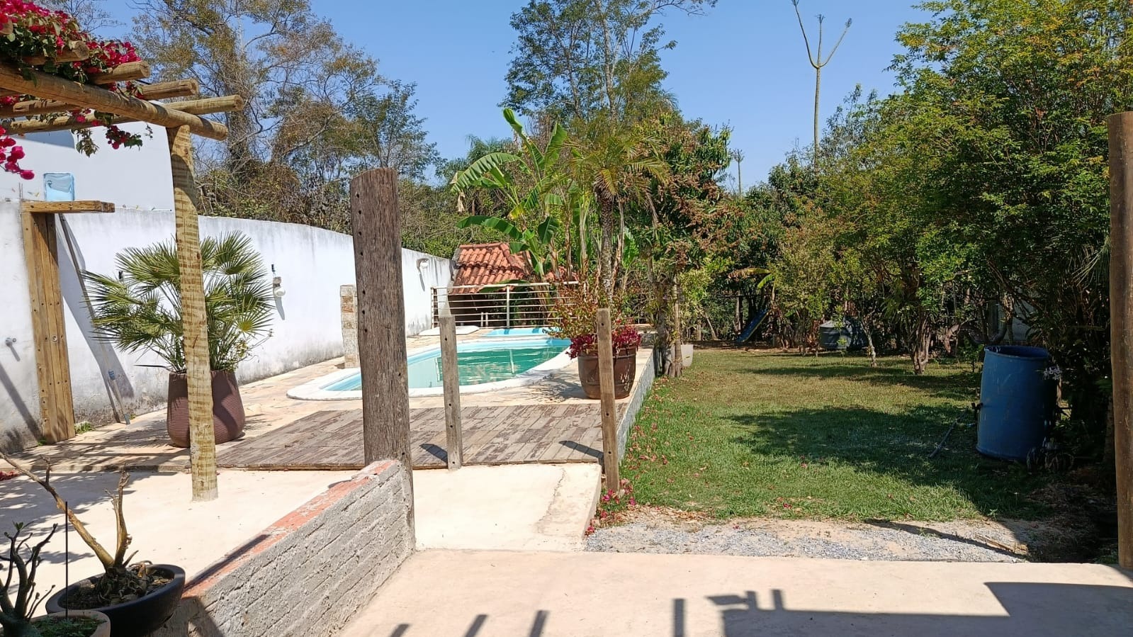 Arborizada com pomar.