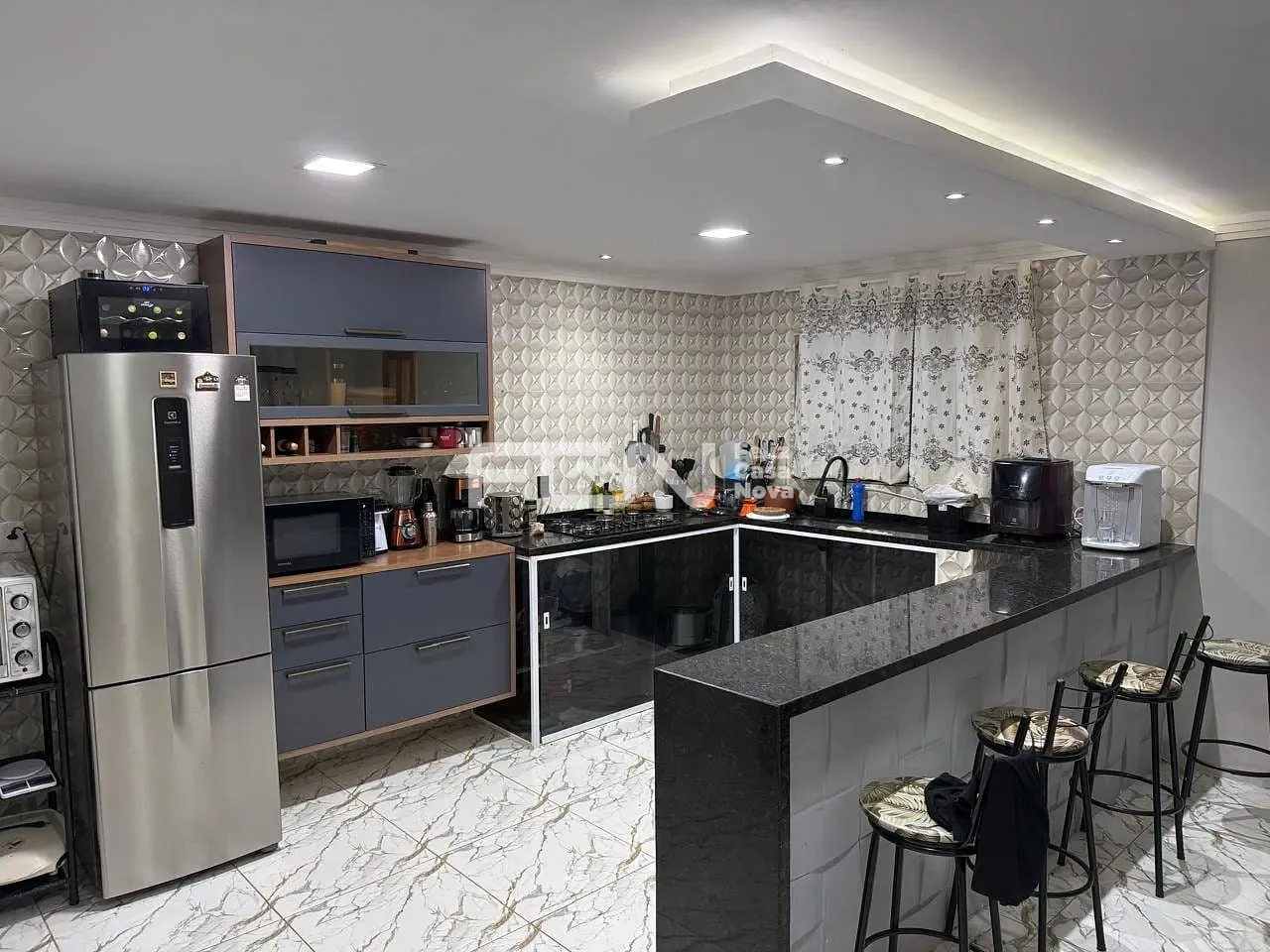 Cozinha com bancada de 6 metros em mármore