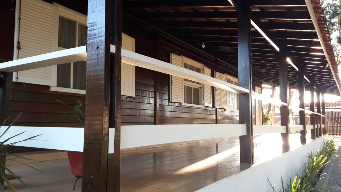 Acabamento Interno: Armários embutidos de madeira maciça (Imbuia) nos quartos e na suíte em perfeito estado; móveis planejados na cozinha, gourmet e banheiros; churrasqueira e fogão a lenha na área gourmet. Banheiros com revestimento até o teto. Será vendida semi mobiliada.