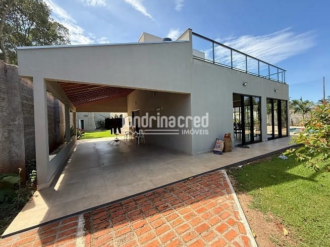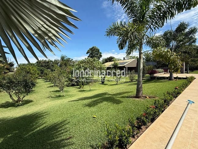 Sobrado de alto padrão em Cambé: 3 suítes, piscina aquecida, casa de visitas, pomar, energia solar