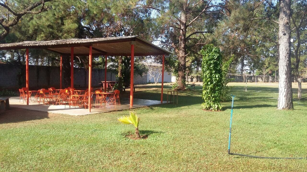 15 mil metros de grama, e bem arborizada.