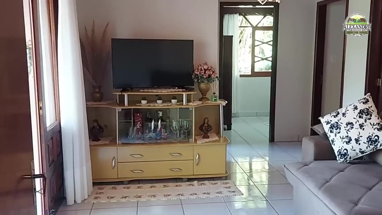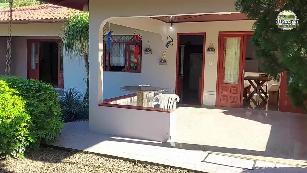 A casa principal é de alvenaria e possui 200 metros quadrados. Ela conta com 5 dormitórios, sala de estar, sala de jantar, cozinha, área de festas, despensa e área de serviço. Um diferencial é o sistema de água quente por serpentina, que traz mais conforto para a família.