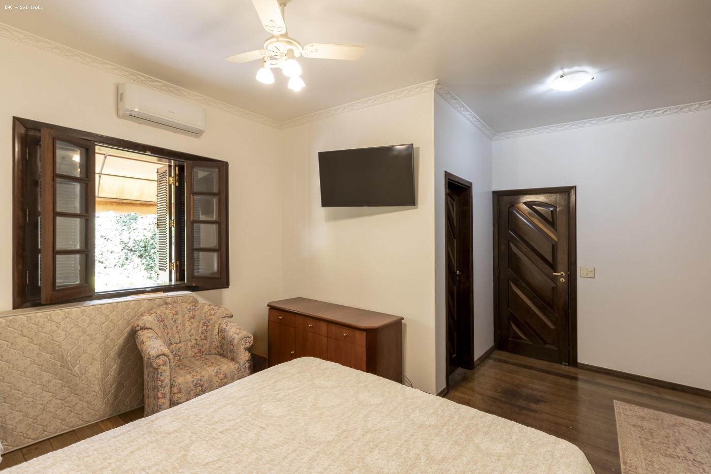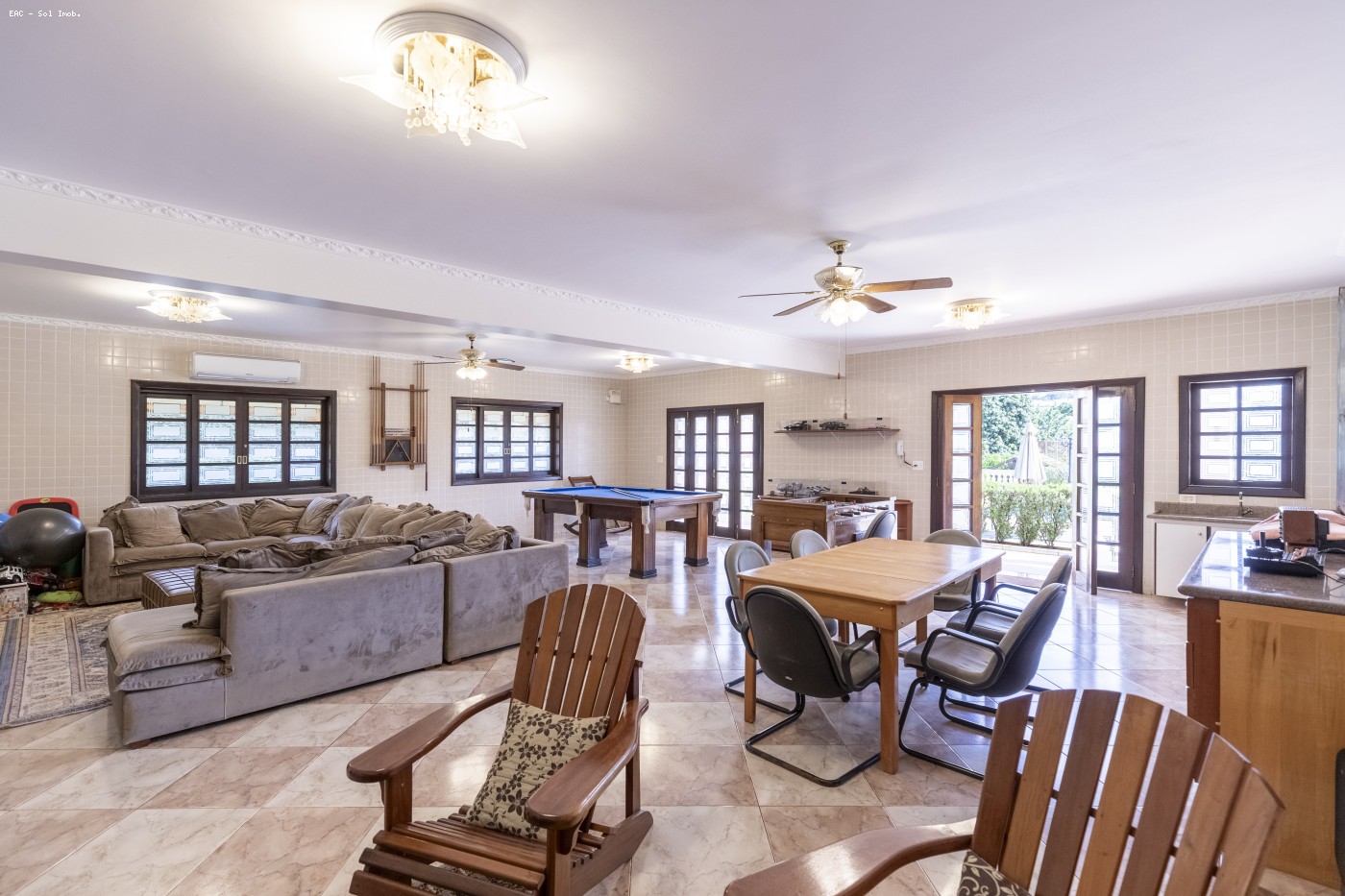 No coração da casa, seis suítes espaçosas quatro delas com closets em madeiras nobres , destacam-se pela suíte master, que traz um escritório integrado, closet completo e um banheiro com banheira de imersão para puro relaxamento. As áreas sociais reúnem lareira elegante, sala de jantar sofisticada e uma copa moderna, todas climatizadas por ar-condicionado de primeira linha. Na área externa, a área gourmet se completa com churrasqueira, forno de pizza e forno à lenha, enquanto a piscina e a quadra poliesportiva garantem lazer garantido. O pomar com variadas frutíferas, galinheiros, viveiros de pássaros e baias para cavalos reforçam o estilo de vida rural aliado ao conforto do asfalto.