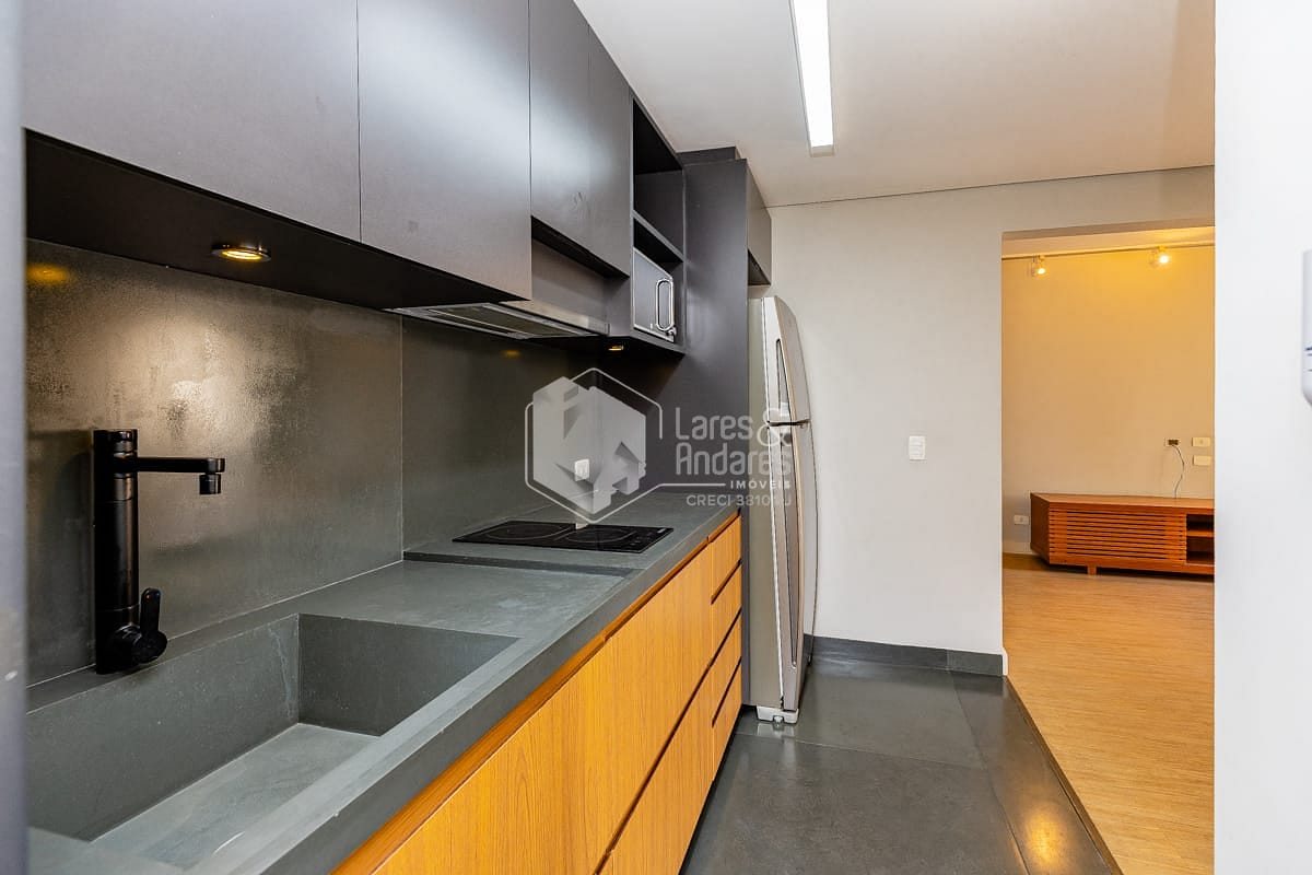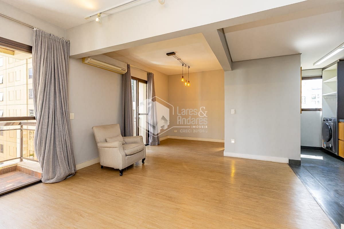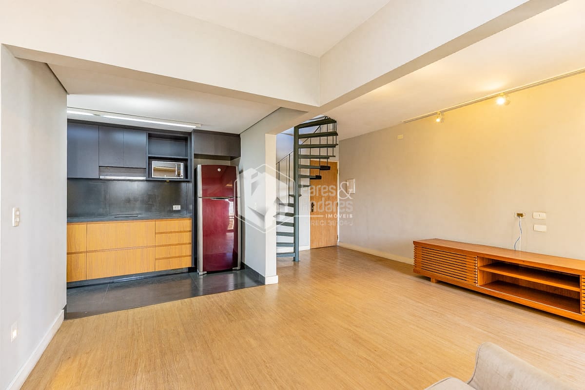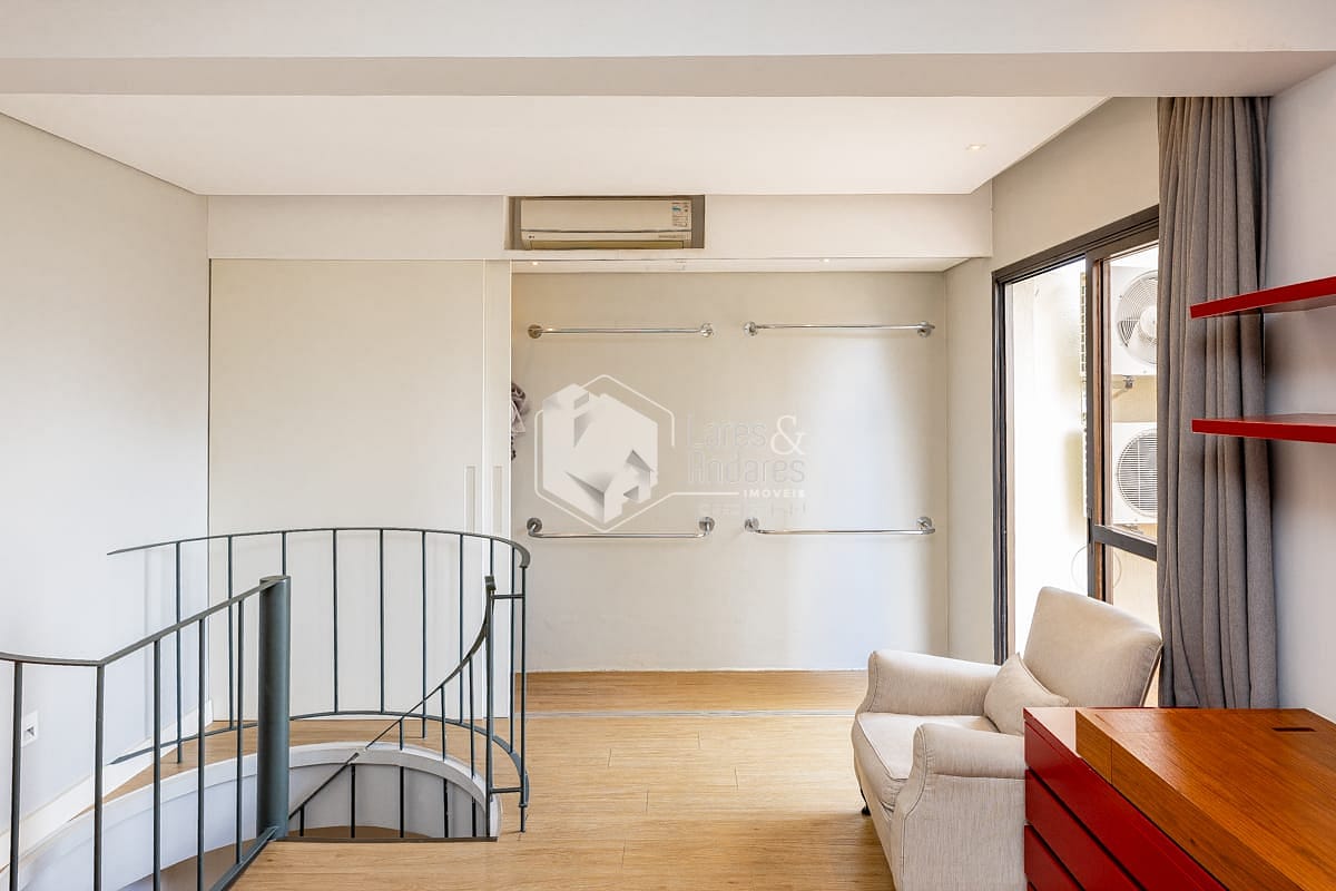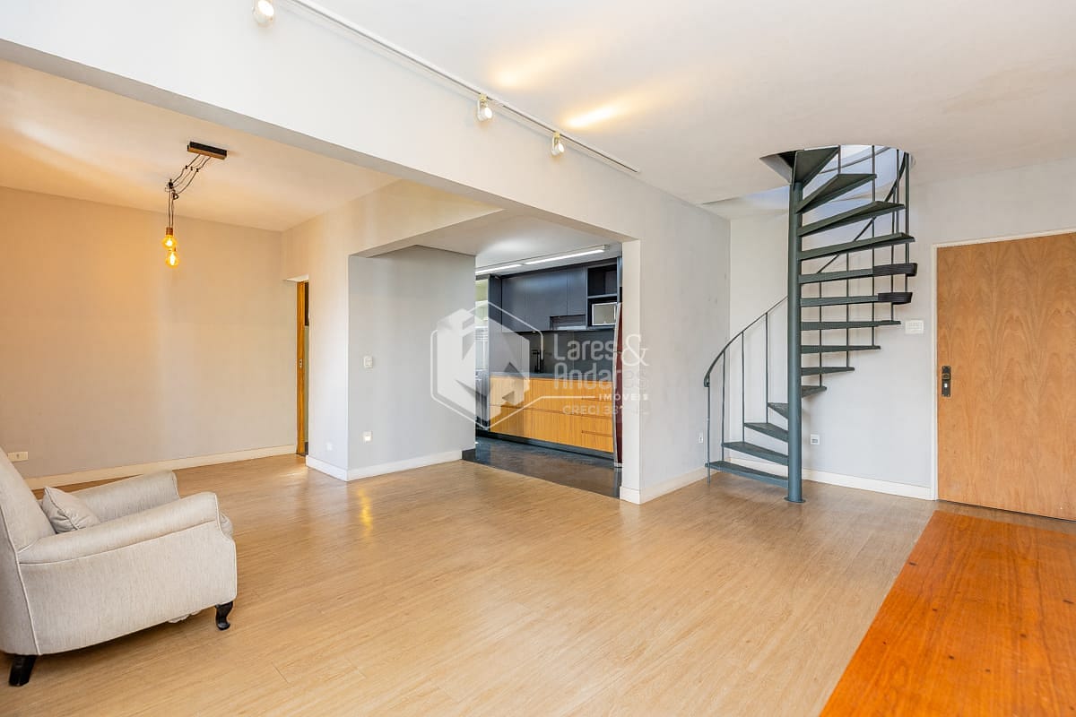 Com 90 m², o imóvel é reformado, possui face solar norte e planta bem distribuída. O pavimento superior concentra a área íntima, com acesso ao amplo terraço, enquanto o inferior abriga um living integrado à cozinha americana e conta com lavabo, resultando em um ambiente luminoso e funcional. É ideal para casal ou para quem busca um apartamento exclusivo para uma pessoa.