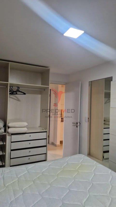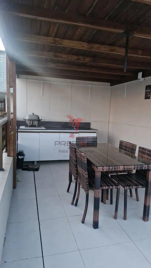 Apartamento com dois quartos, um banheiro, um lavabo, cozinha, área de cima com espaço gourmet e Jacuzzi. Mobiliado