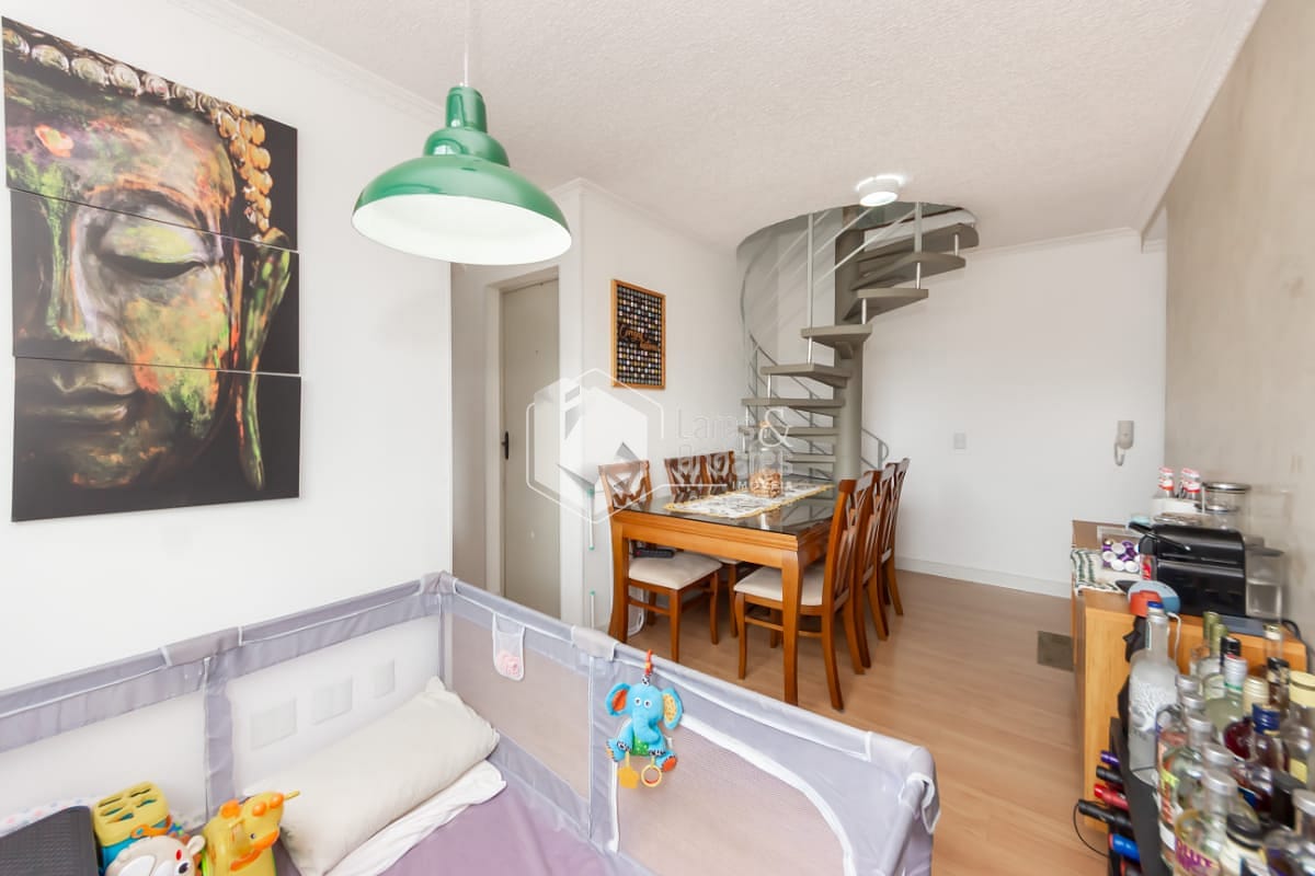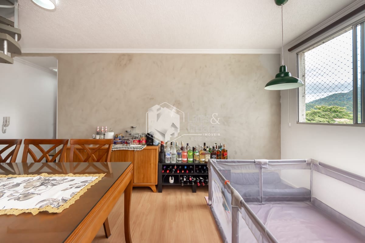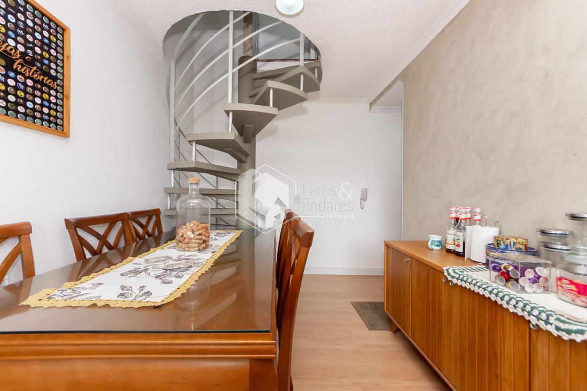 O imóvel possui 2 dormitórios, com a possibilidade de criação de uma terceira suíte na parte superior. atualmente configurada como uma ampla sala e escritório. A sala principal é espaçosa, ideal para dois ambientes, com ótima iluminação natural. A cozinha é funcional e bem distribuída, equipada com armários planejados.
