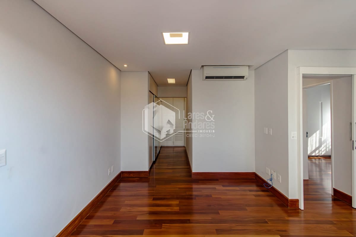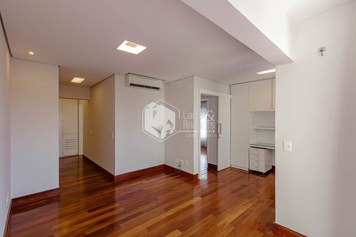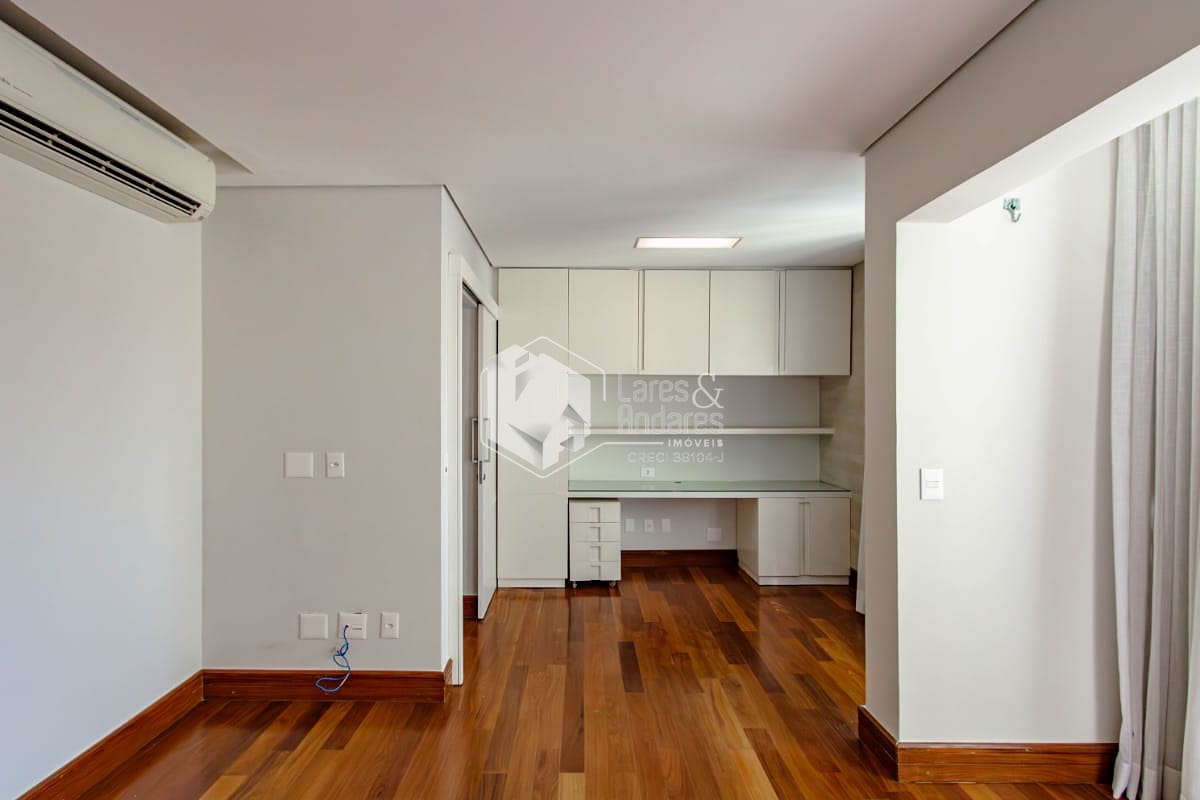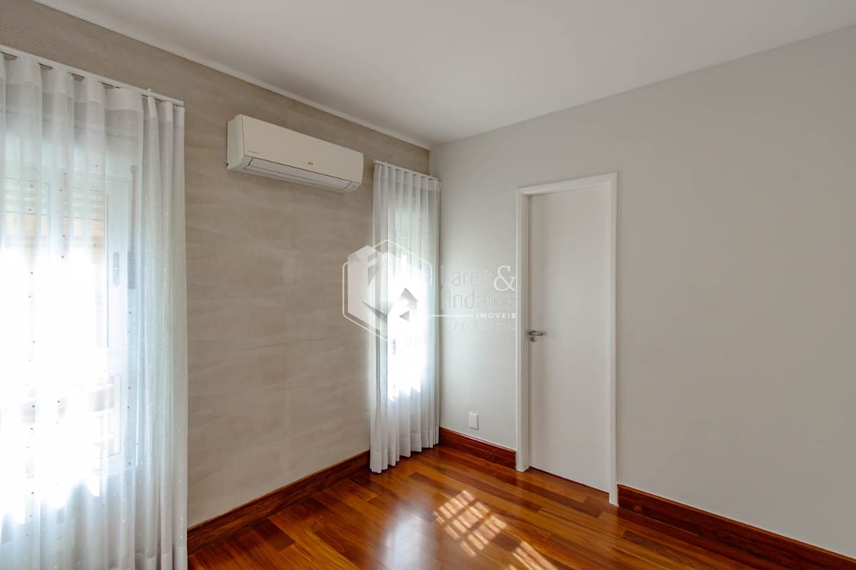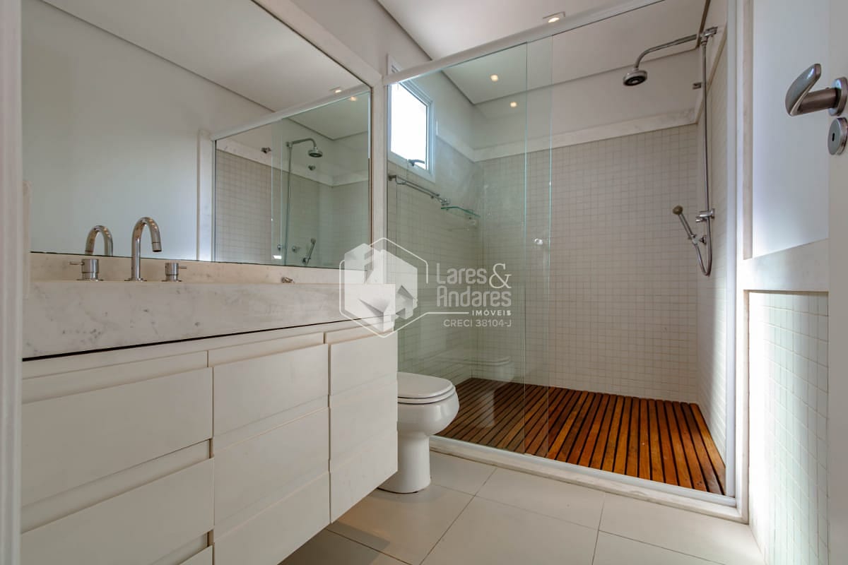 Subindo para o segundo piso, encontram-se duas suítes que garantem a privacidade de todos. Uma delas é a suíte master, um verdadeiro refúgio com um generoso closet e uma área de home office com bancada, gaveteiros e armários. Os banheiros são extremamente iluminados e espaçosos, proporcionando momentos de relaxamento.
