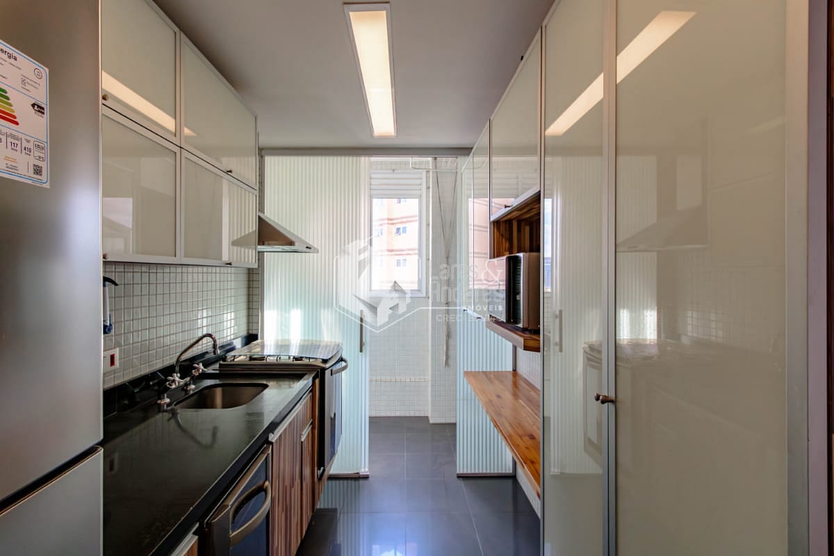 No primeiro pavimento você é recebido por uma ampla sala de estar e jantar, inundada por muita iluminação natural, perfeita para receber amigos e familiares com elegância. Um lavabo charmoso complementa este ambiente social. A cozinha do dia a dia é funcional e já vem equipada com refrigerador, micro-ondas, lava-louças, coifa e fogão embutidos. A área de serviço é prática e bem dimensionada.