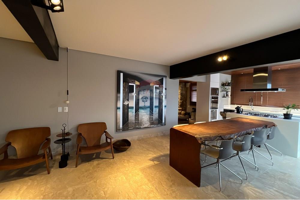 Uma cobertura duplex que combina proporção, elegância e privacidade em um dos endereços mais tranquilos do Vila da Serra. São 298,97 m² distribuídos com equilíbrio entre áreas sociais amplas e espaços íntimos bem definidos, conectados por acabamentos selecionados com rigor.