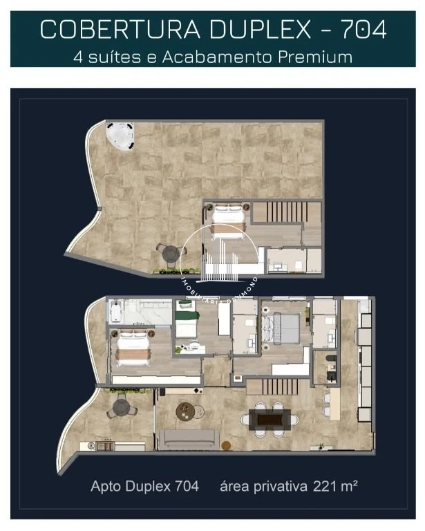 Cobertura 4 quartos em Coqueiros, Florianópolis com 227m² e vista panorâmica para o mar. O imóvel possui dois pavimentos com sala de estar e jantar, sacada, cozinha, lavanderia, lavabo e 4 suítes sendo uma master com banheira de hidromassagem e sacada com vista mar. No segundo pavimento encontra-se ampla suíte com terraço, spa privativo com ofurô e vista panorâmica para a ilha e mar.