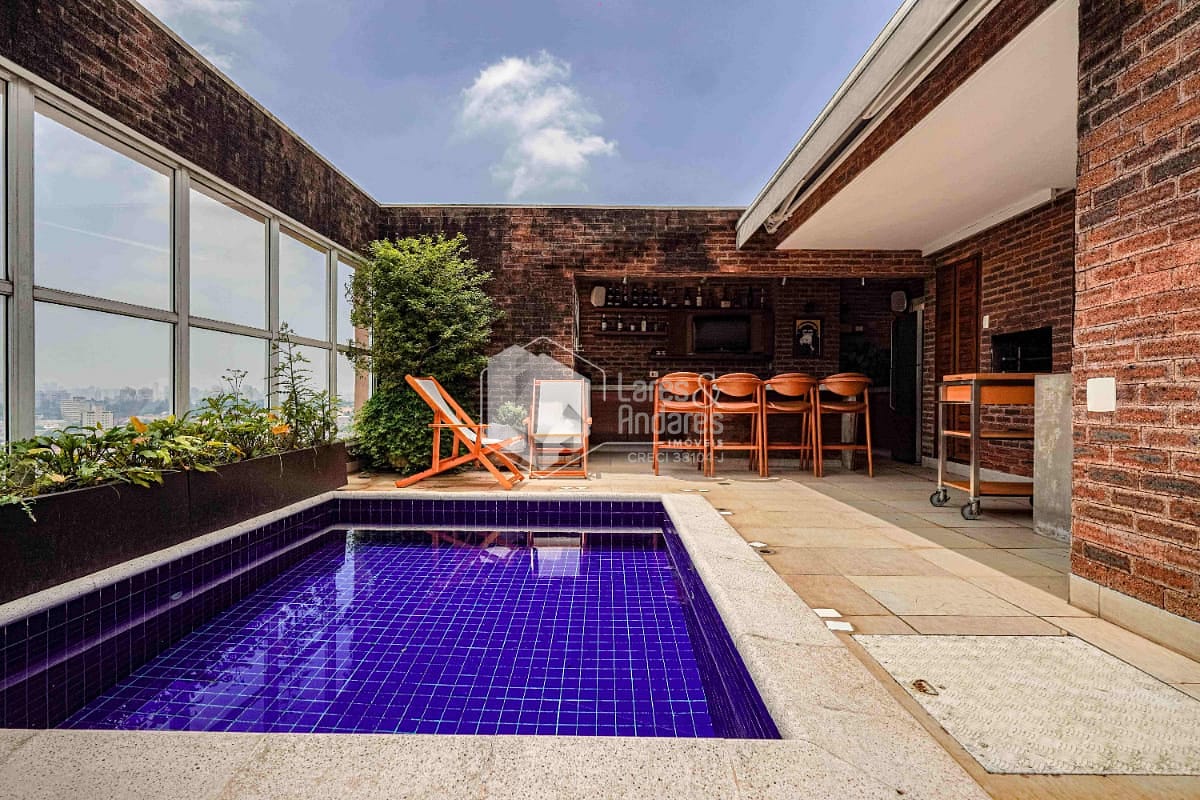Localizado na rua Rua Pedro Pomponazzi, 623, esta bela cobertura com 404 m² de área privativa, oferece amplos ambientes integrados, 4 dormitórios (2 suítes), 6 banheiros, 4 vagas de garagem e uma área externa espetacular com piscina privativa e churrasqueira.