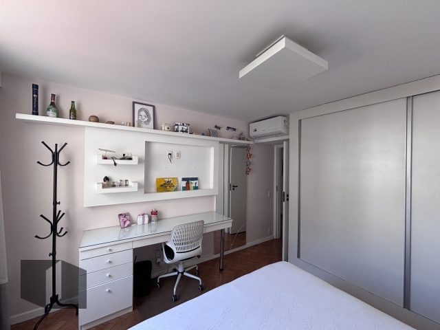 Possui planta circular integrando com privacidade a área social e área íntima, além de corredor com armários embutidos. Cozinha planejada e área de serviço com dependência completa.
