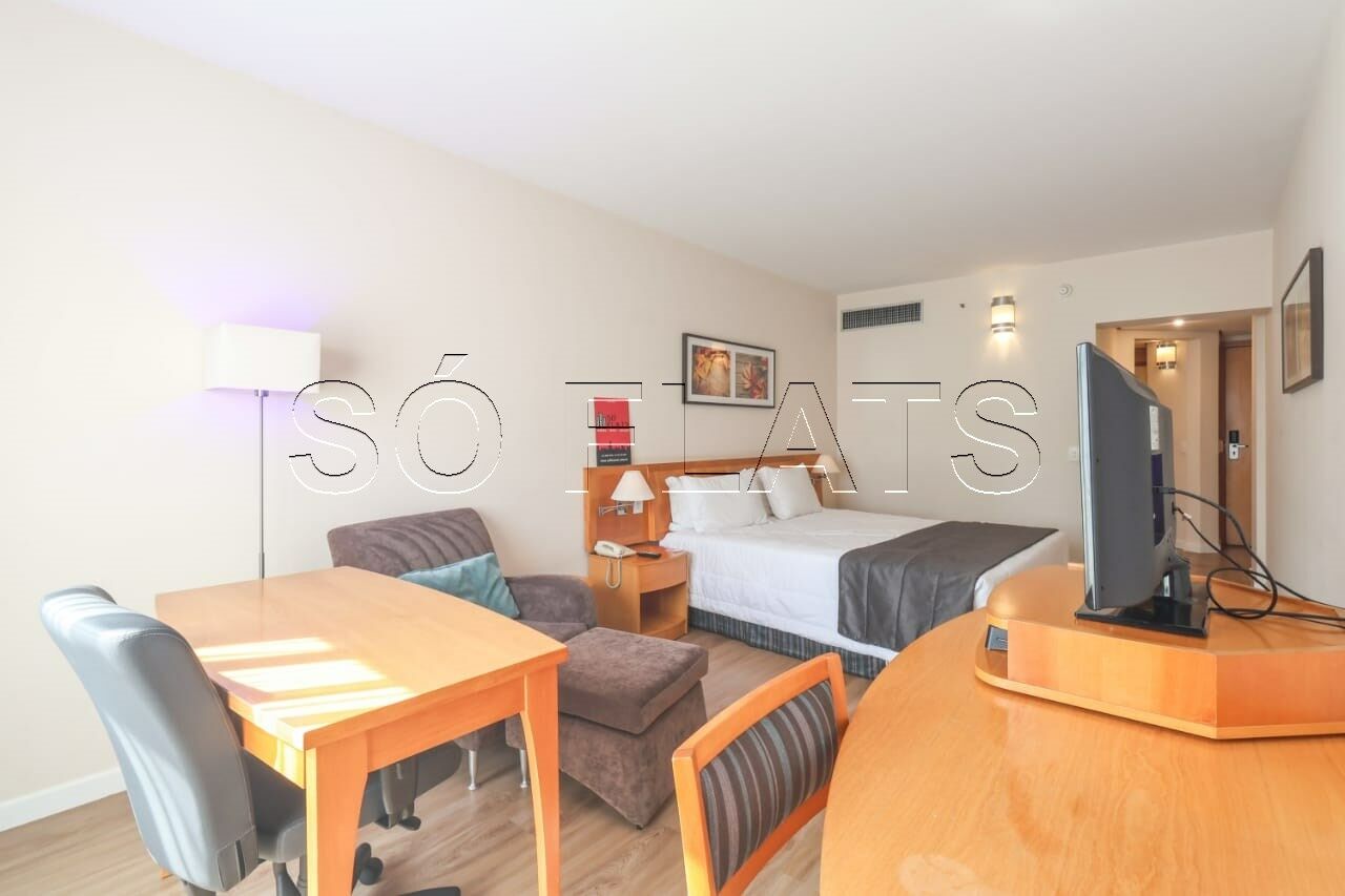 Flat em Alphaville, conheça já o Sol Alphaville Business Hotel. O Sol Alphaville Business Hotel está situado próximo aos centros comercial e financeiro de Alphaville. A propriedade oferece quartos modernos com ar-condicionado e TV a cabo, além de comodidades como piscina ao ar livre. Os quartos do Sol Alphaville Business Hotel dispõem de frigobar e Wi-Fi. Além da piscina ao ar livre, você pode desfrutar do business center, da academia e da sauna disponíveis no estabelecimento. No Sol Alphaville, o Restaurante Quatro Estações serve pratos inspirados nas culinárias nacional e italiana. Você também pode saborear uma variedade de bebidas e lanches oferecidos pelo Web Café. O centro de São Paulo fica a apenas 22 km do hotel e o Aeroporto de Congonhas está localizado a 40 minutos de carro da propriedade.