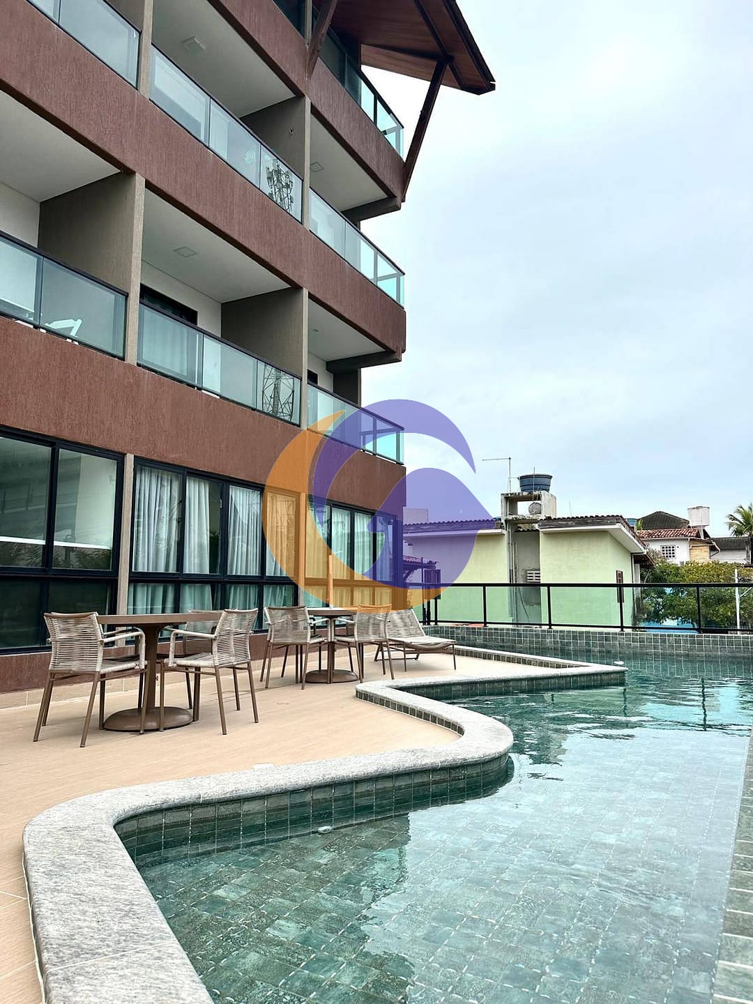 Flat no 2º andar, com vista definida para a rua e para a piscina