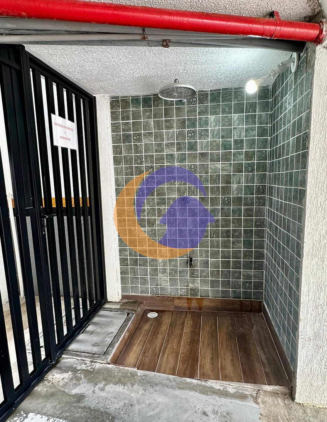 Lavanderia, banheiros e chuveiros de apoio no térreo e na área da piscina