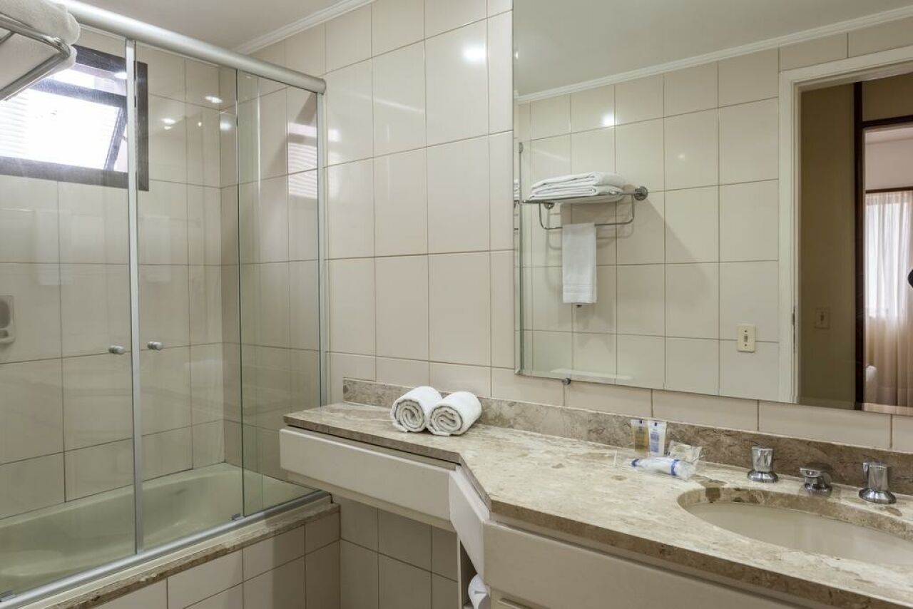 Este complexo 4 estrelas conta com restaurante, piano bar e comodidades esportivas, tais como piscina e academia.
