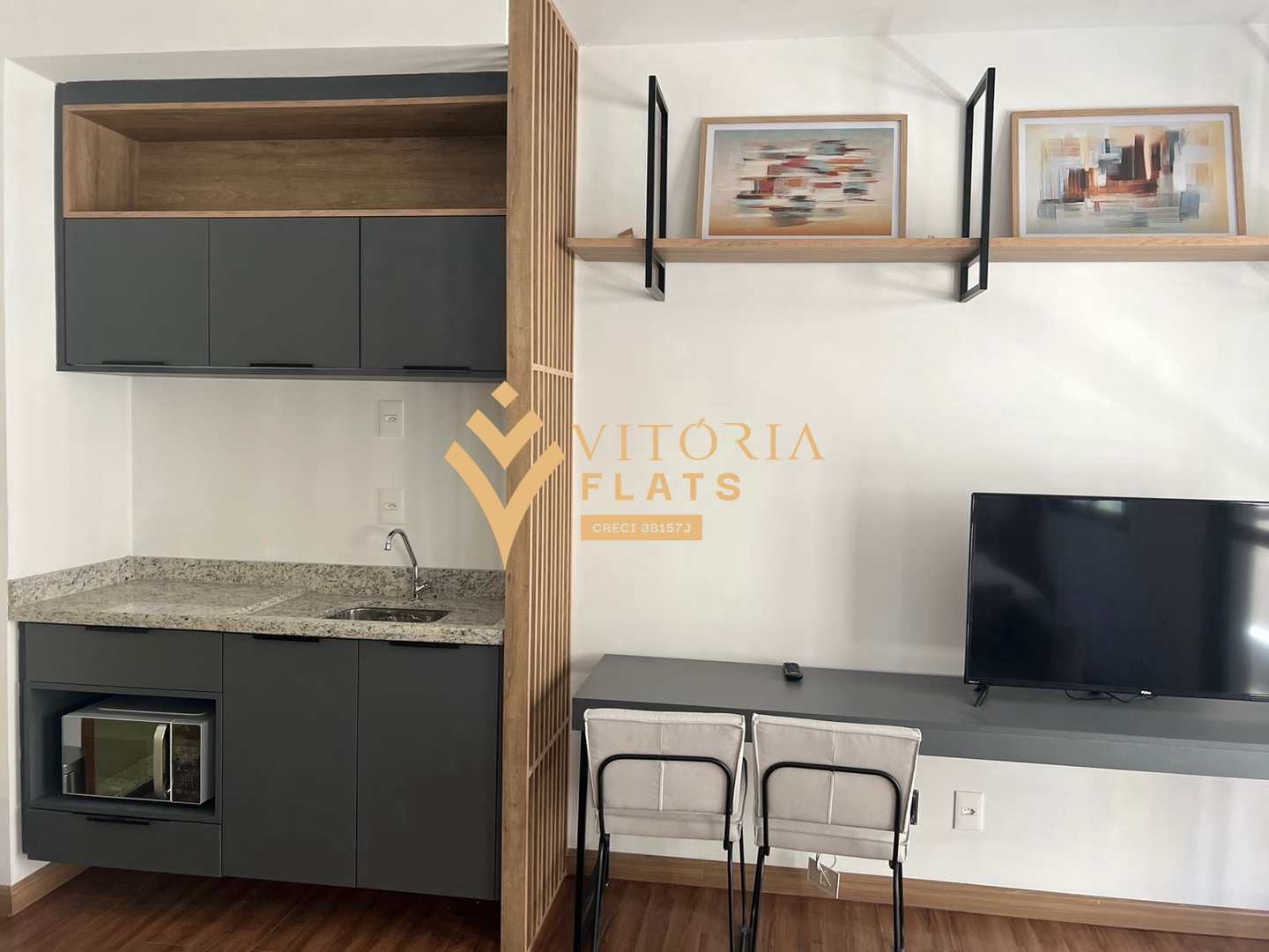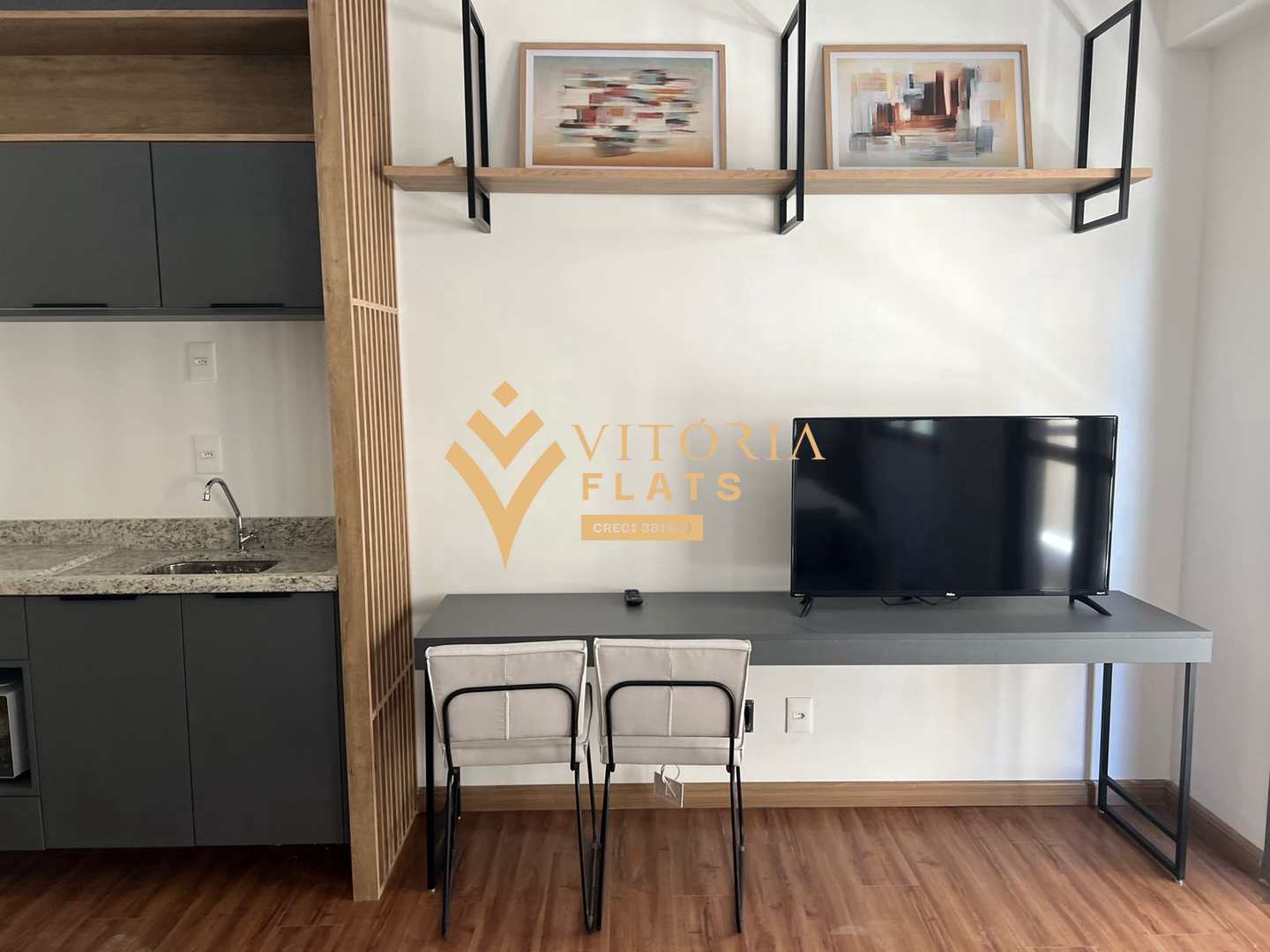 Studio contemporâneo no DUO Residence, com ambiente bem planejado, atmosfera sofisticada e acabamento de alto padrão. Um espaço prático, acolhedor e pronto para quem busca conforto, mobilidade e vida urbana de qualidade.