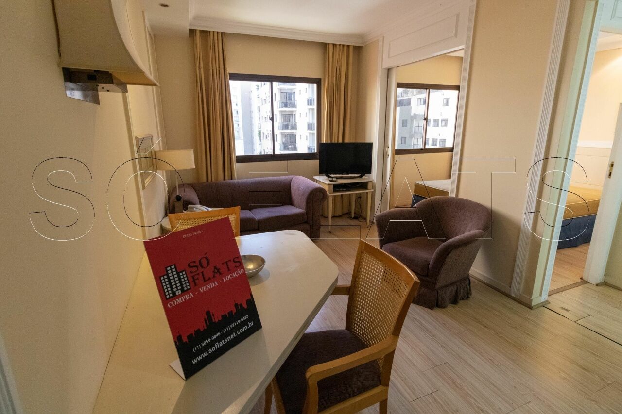 Os apartamentos são todos mobiliados e incluem TV a cabo, cozinha compacta completa e frigobar, sala de estar, rádio e telefone. Para sua comodidade, conta com recepção 24 horas e estacionamento privativo, dispõe de piscina, academia e WiFi, fica a apenas 5 minutos de carro do Centro Financeiro da Avenida Berrini.